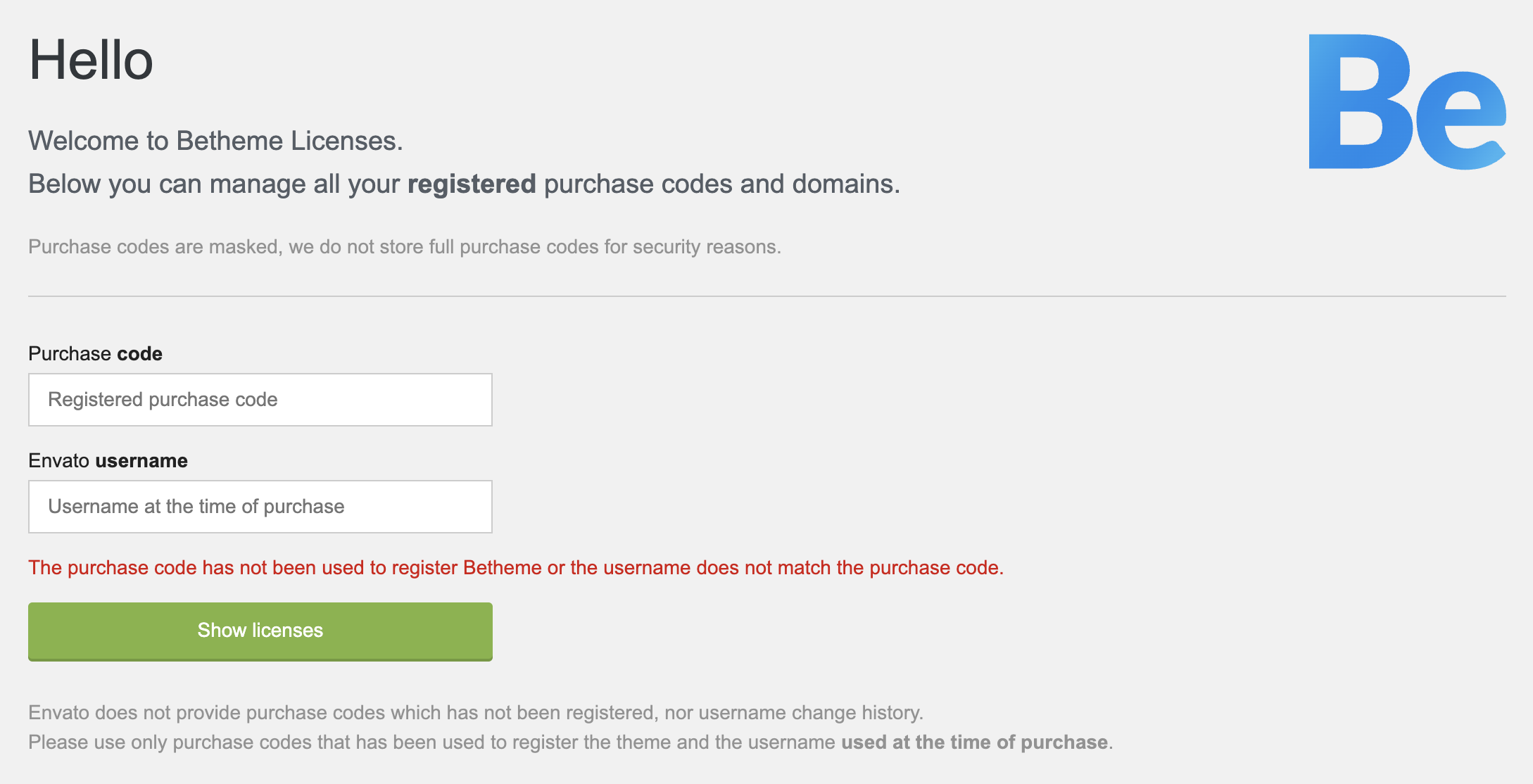 This is what I get when I put in our purchase code and our username "neighborhoodnerds"
