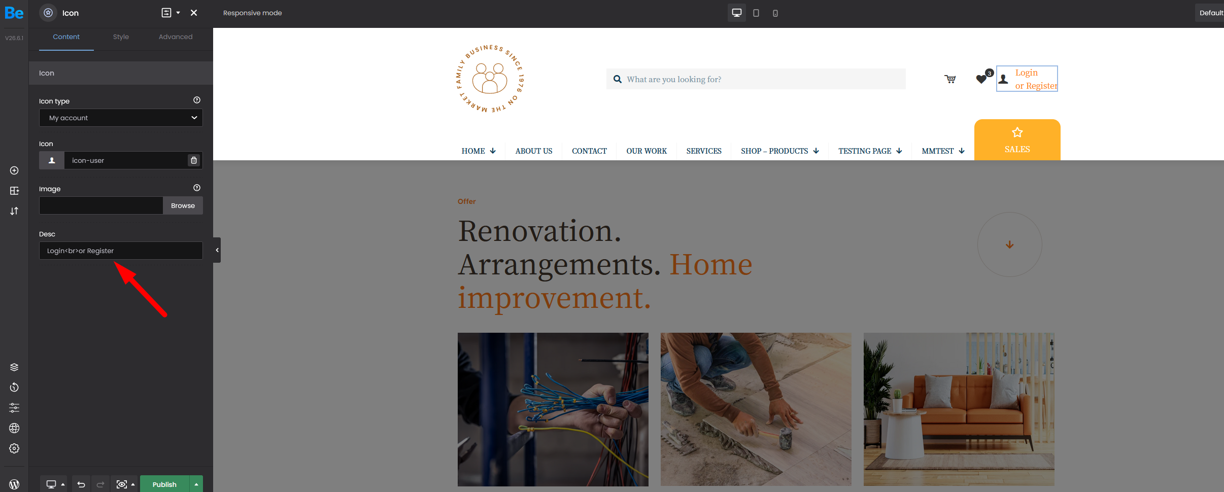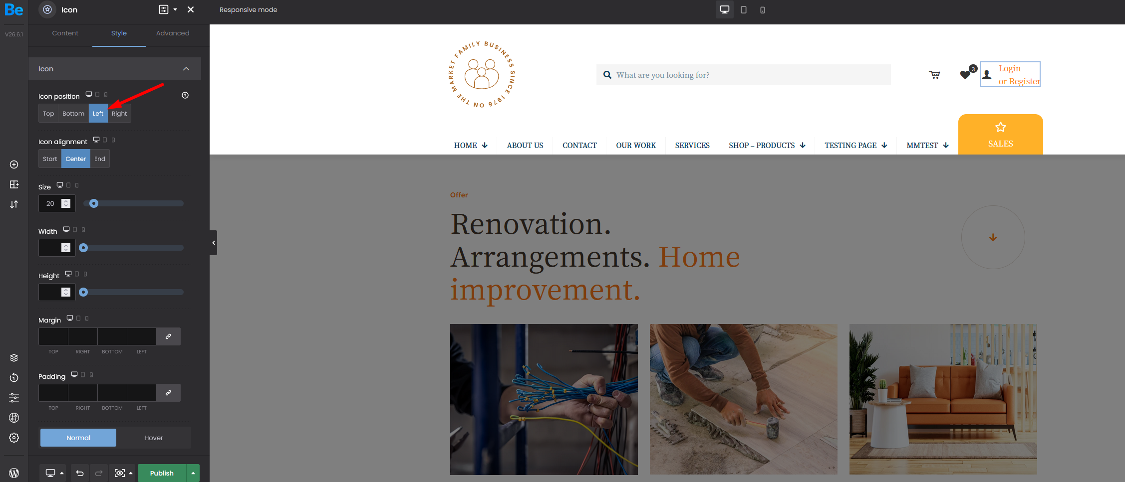 To achieve that, you need to use the Header Builder, add a description to the icon, and set its position to the left.