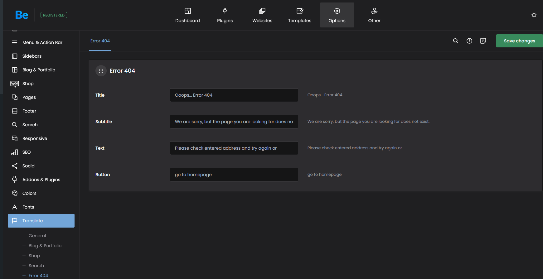 You can change it in Betheme -> Theme options -> Translate -> Error 404: