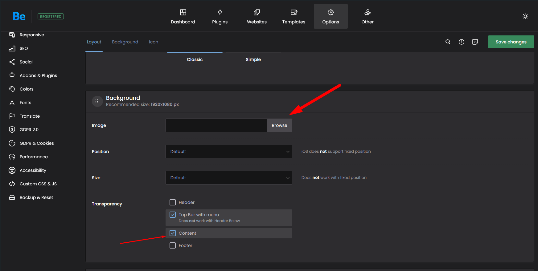 5) To assign the image to the entire website, you can do it through Betheme -> Theme options -> Global -> General: