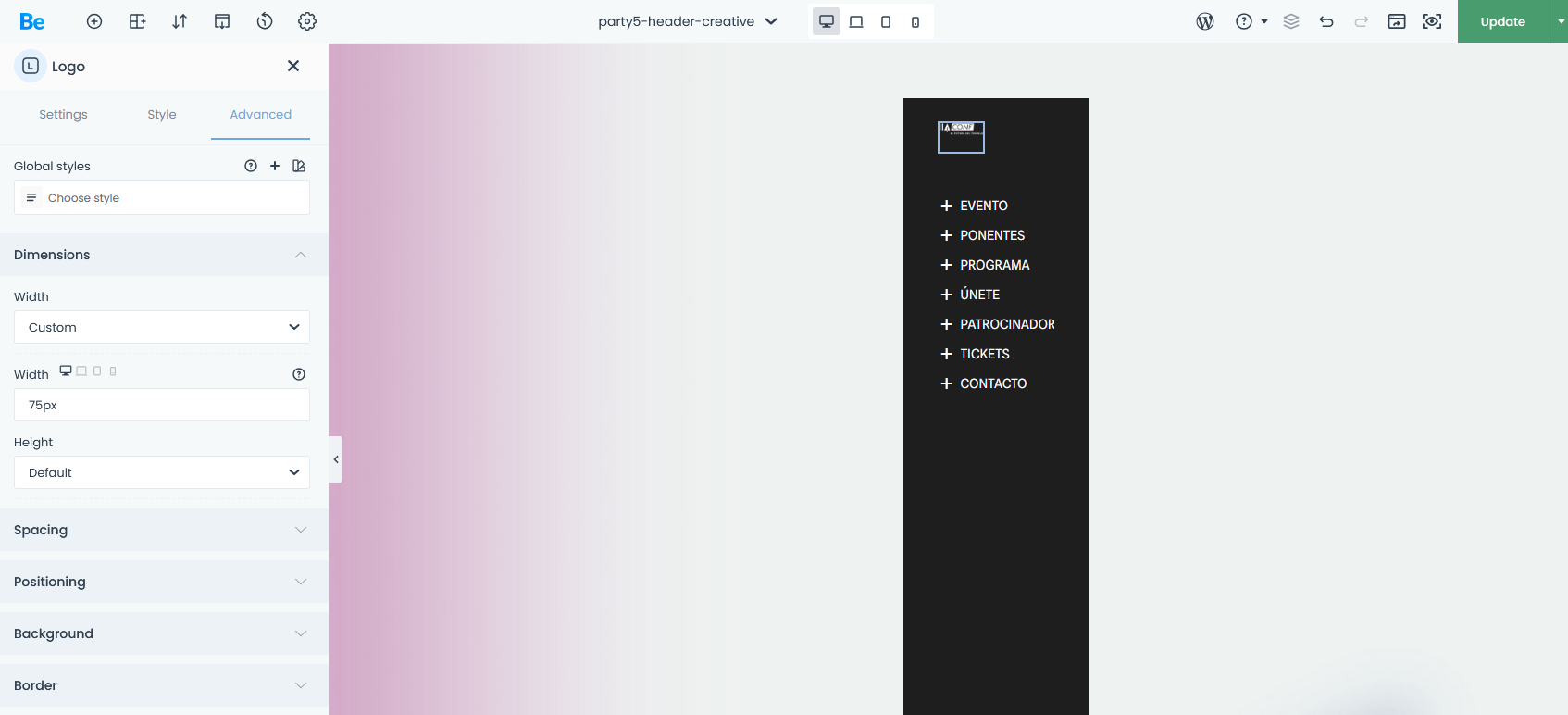 I'm solving the logo and menu issue. I was editing the "party5 sidebar menu mobile" file, but not "party5-header-creative". Now it's working.