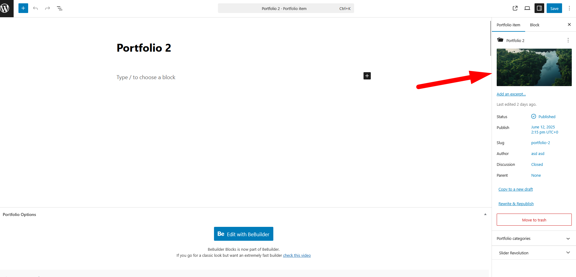 2) Portfolio page featured image can be set here: