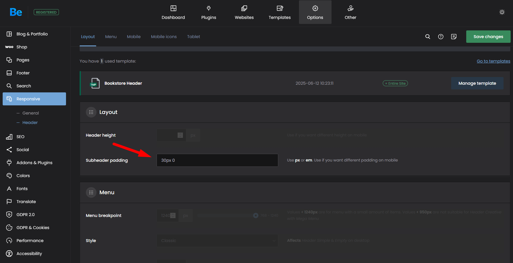 Please go to Betheme -> Theme options -> Responsive -> Header, and set paddings there that will work best for the mobile view:
