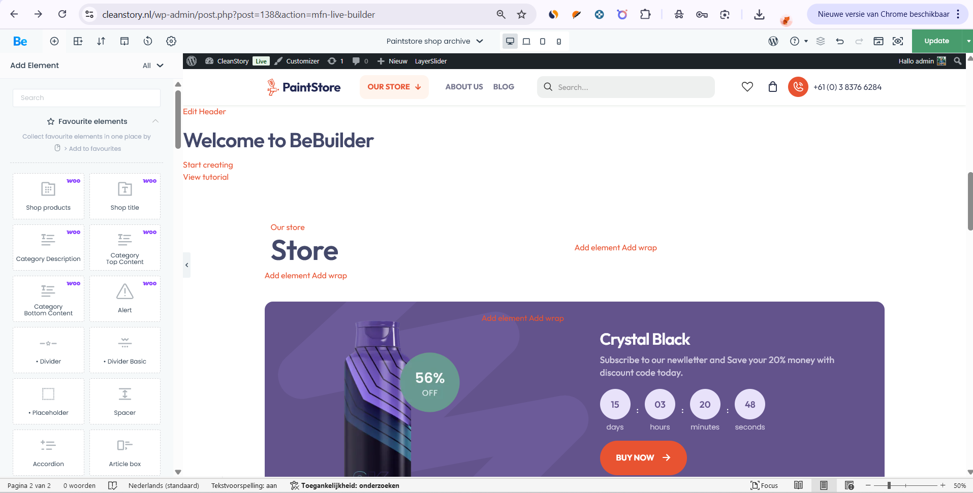 I even deleted my entire webshop, reinstalled everything, and downloaded the PaintStore theme again, still no results. I then tried switching to another pre-built theme (Default Store 2), but that also didn’t work. Eventually, I deleted everything again and went back to PaintStore, installed all required plugins, and carefully followed the setup instructions.