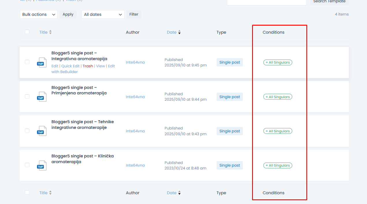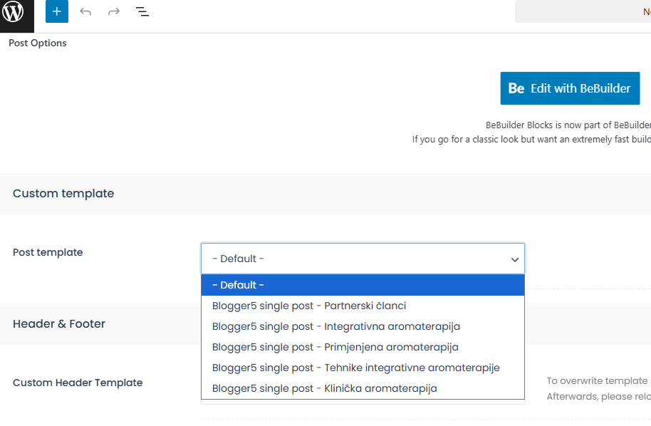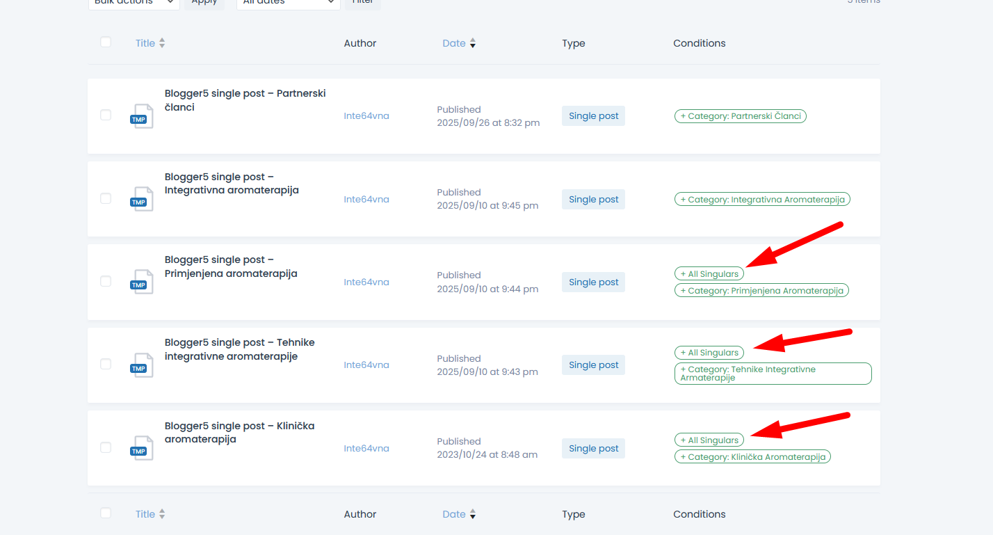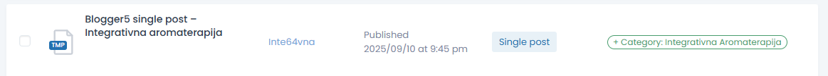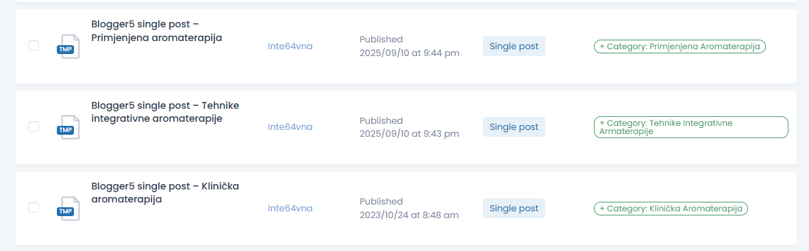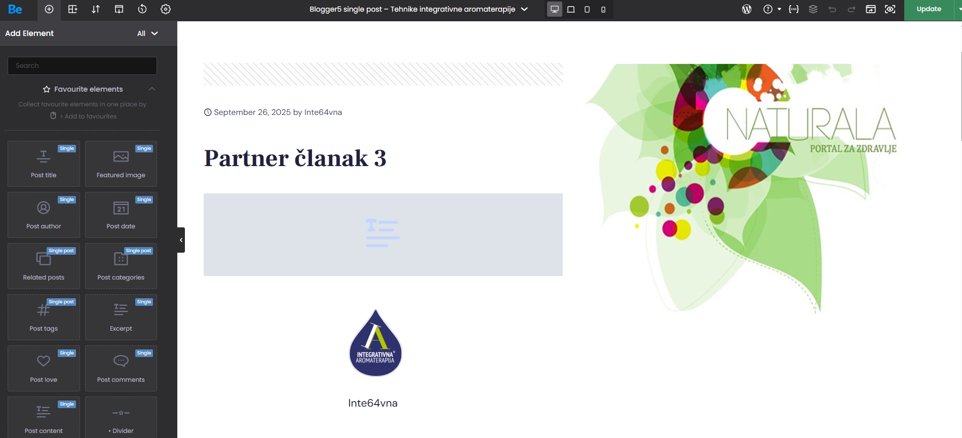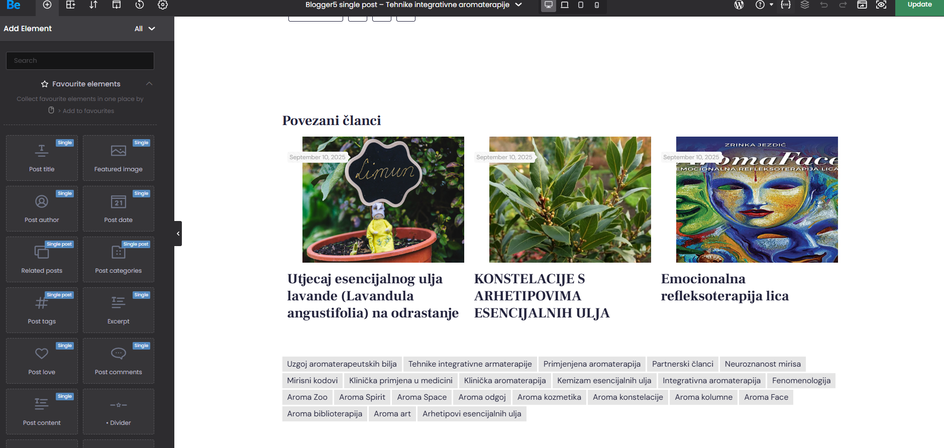 Although, in the beckend of the tepmplate "BLogger5 single post - Tehnike integrativne aromaterapije" it is shown correct
