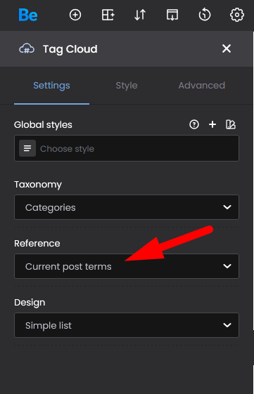 If you mean the Tag cloud element, then you can set the Current post terms reference for that: