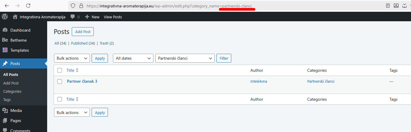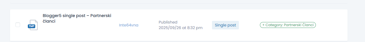 Anyway, as I checked your template, the template assigned to the "Partnerski članci" category displays correctly in the posts.