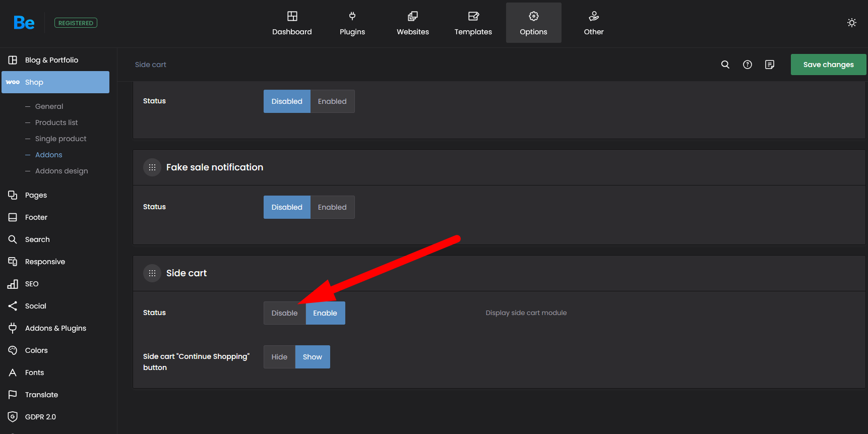 You can disable the Side cart in Betheme -> Theme options -> Shop -> Addons: