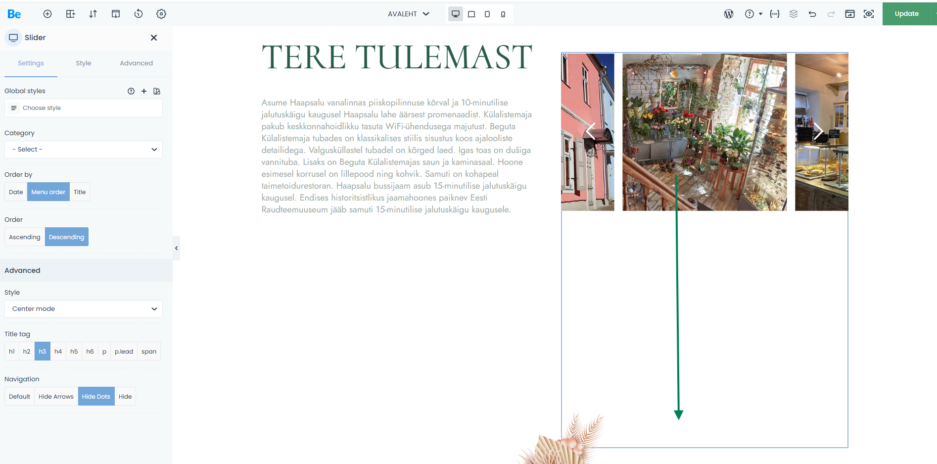 Is it possible to adjust the Slider so that it appears taller? I added images sized 900x900, but they display smaller. When I change the height under the Advanced settings, the area becomes taller, but the slider itself doesn’t increase in height.