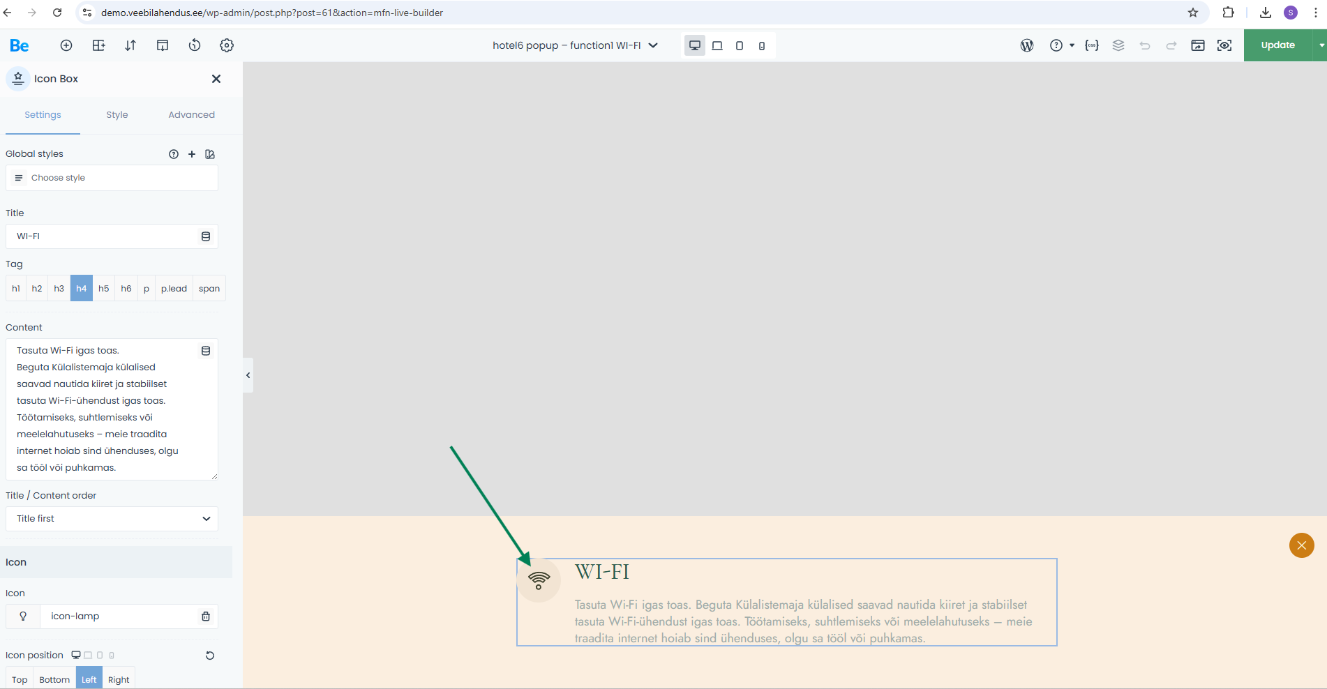 I can’t figure out how to change the Icon Box icon under Templates. When I edit it there, it still shows a different one:
