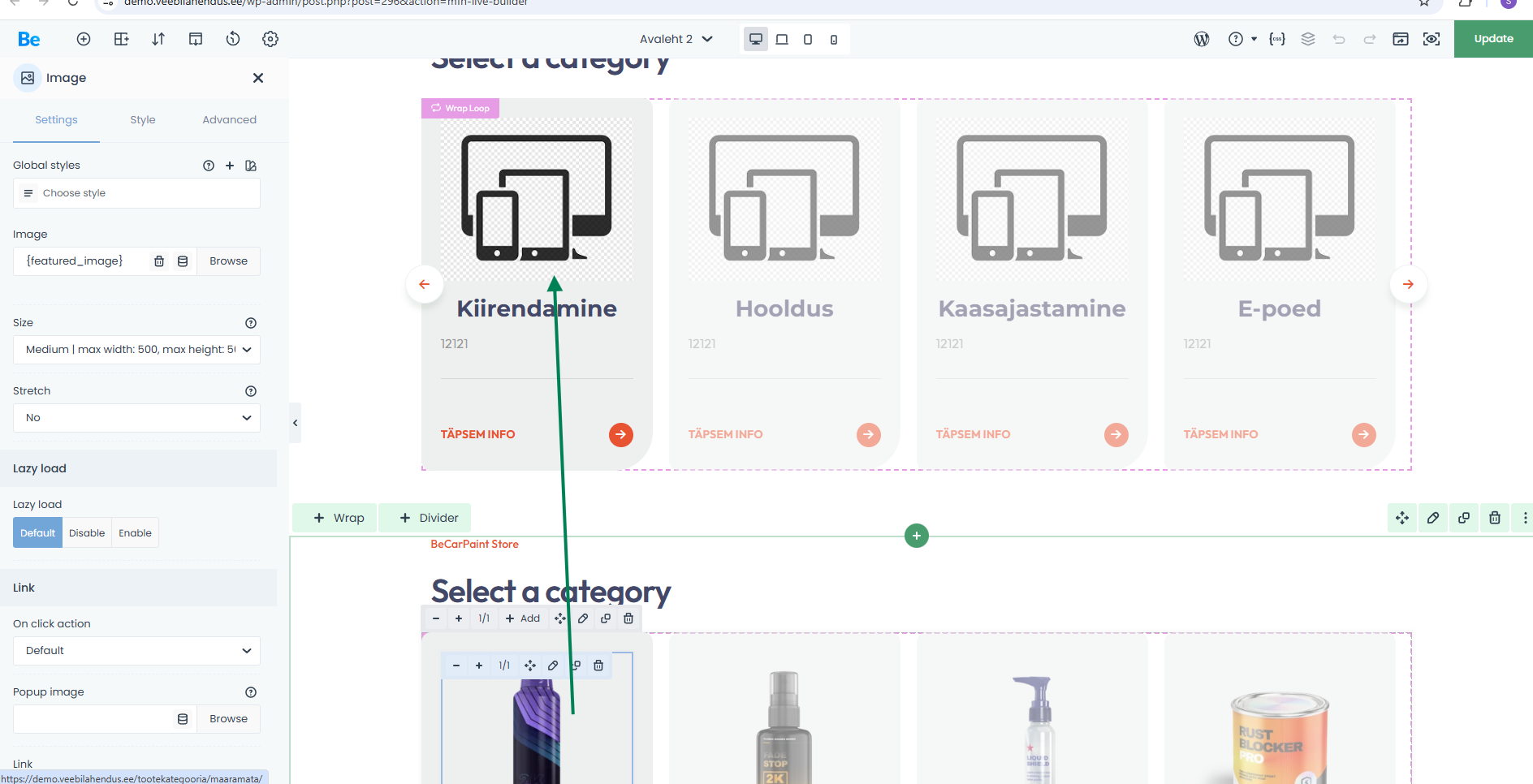 I don´t get how to change the image hover effect so that the image slightly enlarges when the cursor moves over it — just like in the demo (Paint Store) on the product images. I’d like to achieve the same effect for my own uploaded images