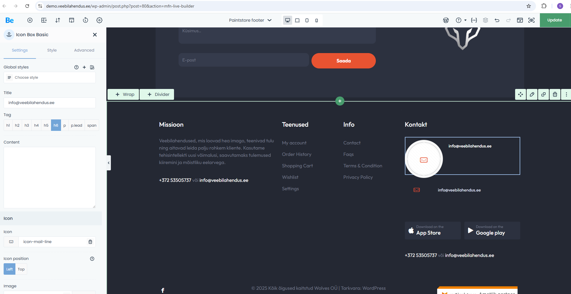 footer, url: https://demo.veebilahendus.ee/ pw: 12345