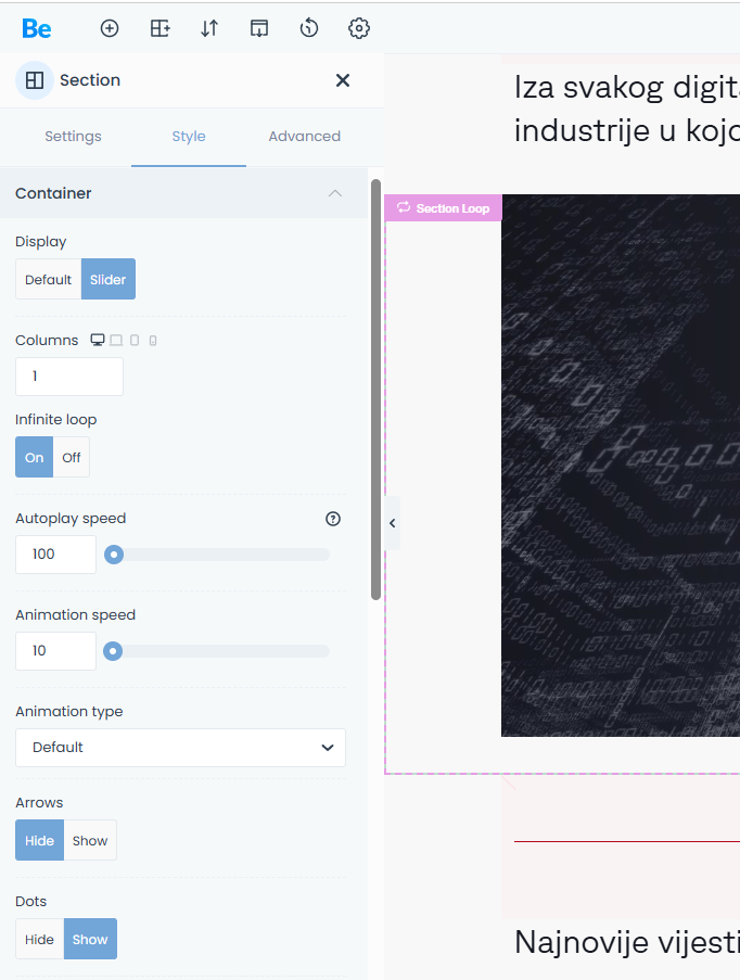 I’m experiencing an issue with the Section Loop element when I enable the slider animation option.