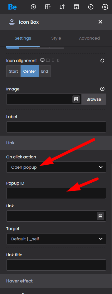 Can you please expand the Icon Box element to allow for the opening of a popup?