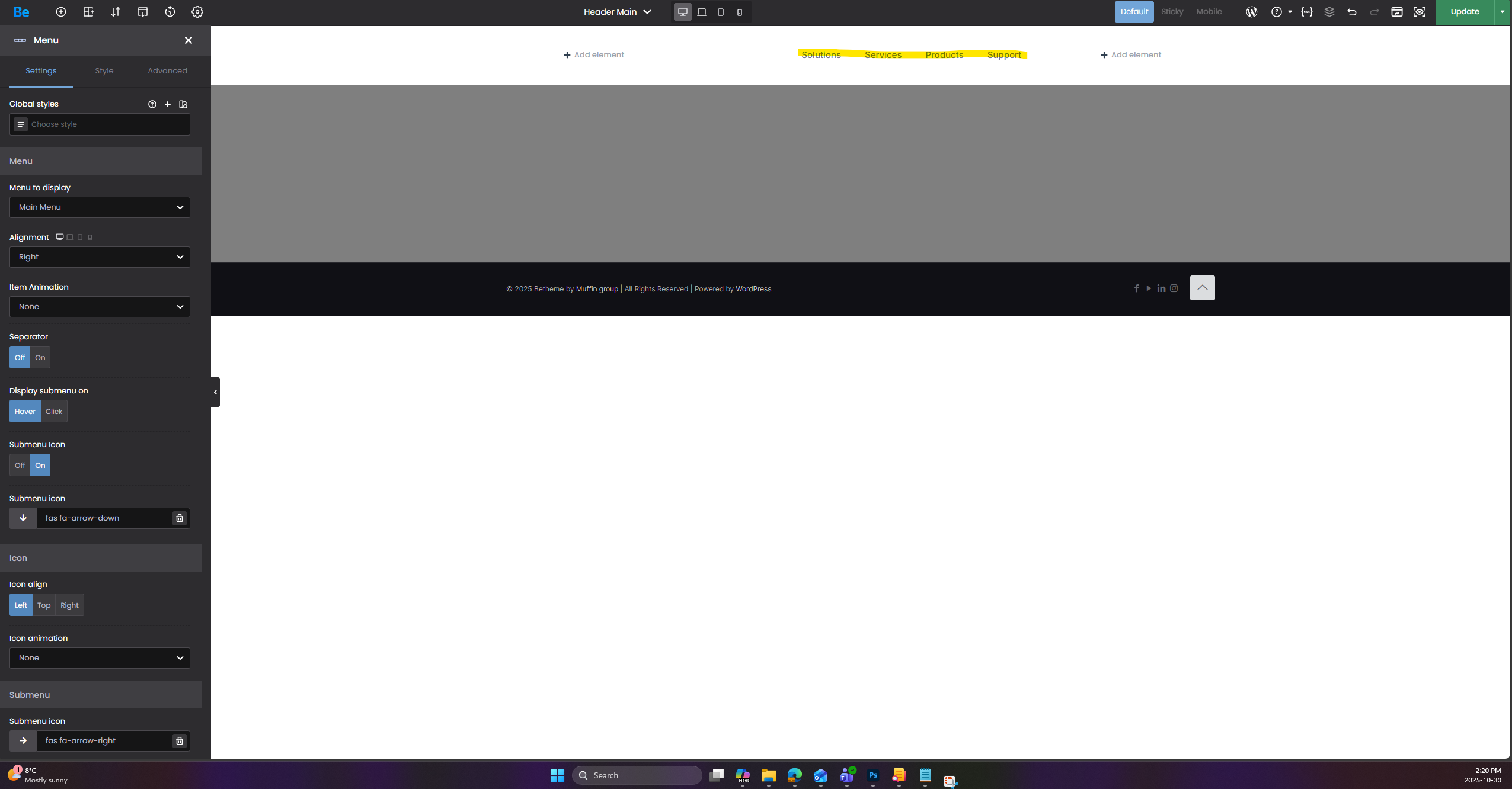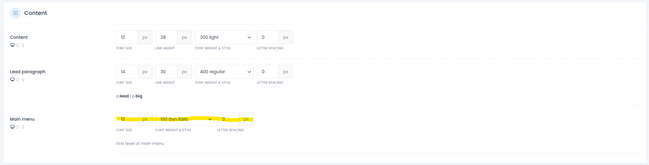 I'm trying to build the global Header Menu using the Templates header builder. I have set the Theme Options/Fonts Size & Style/Content/Main Menu to the desired Size, Font weight & style, however these changes do not effect my header. I'm working in a private browser, have purged cash and disabled any caching plugins, I have also ensure PHP Var values are set to 10000. No matter what changes i make to the fonts style, the menu items in the header are unaffected. There are no global created styles this is a fresh install with no demos loaded. Any help would be appreciated.
