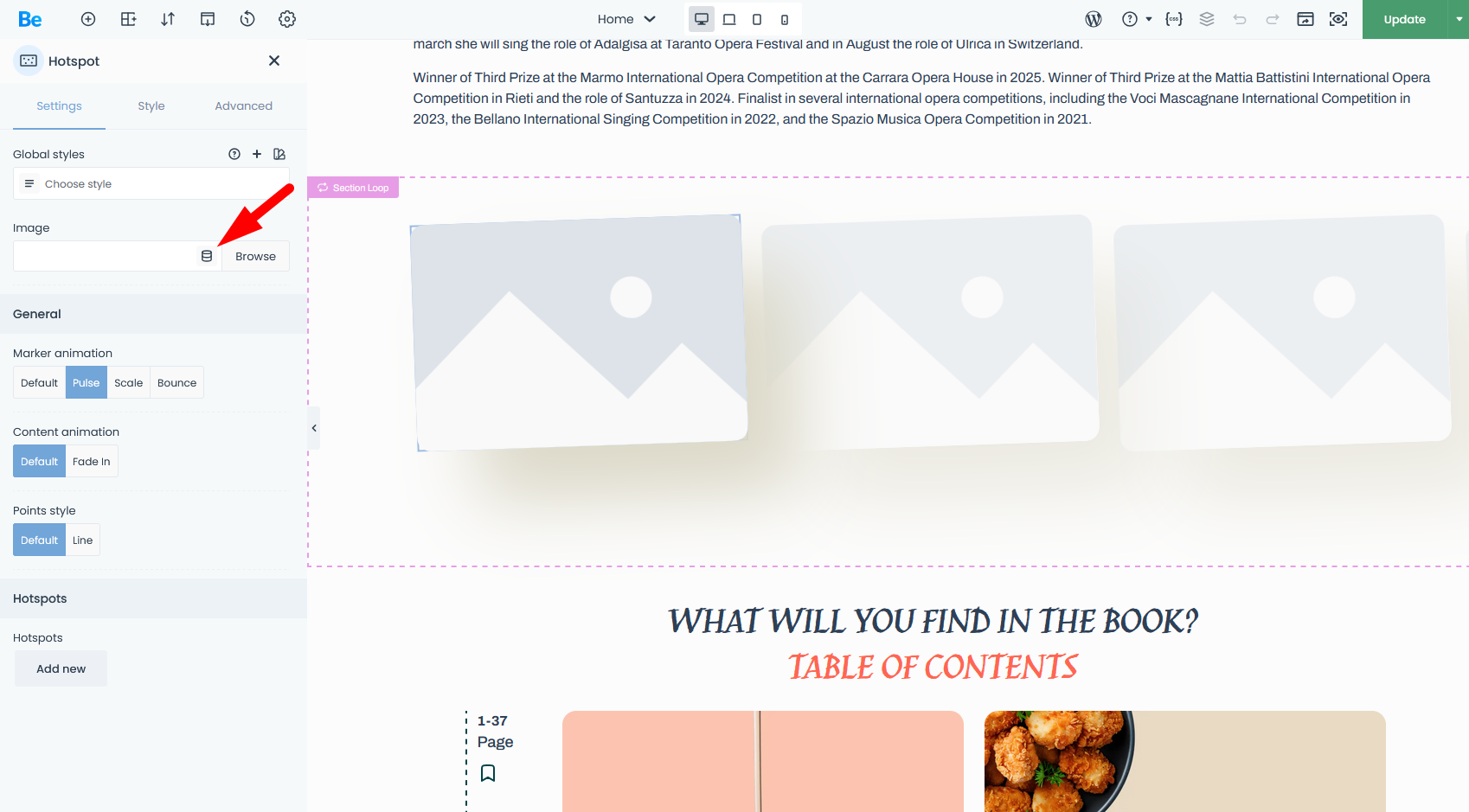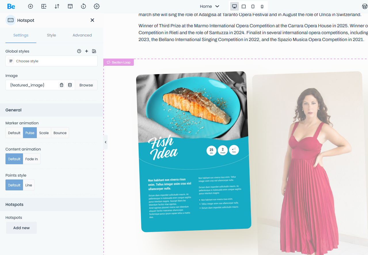 I would actually need a little more help in two tools I can't figure out myself. In the query loop section, even if I have selected to display there the slides I've saved, it keeps not showing anything. Also I can't manage to edit the menu that's shown once you scroll down in the page.