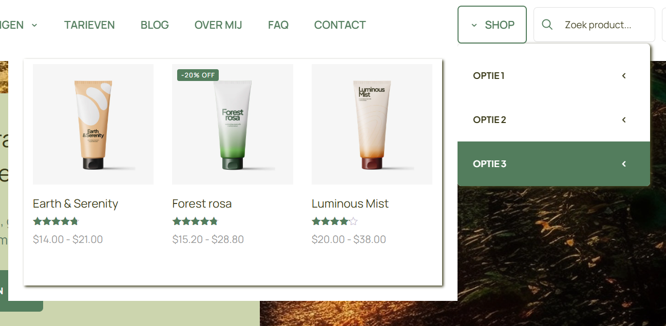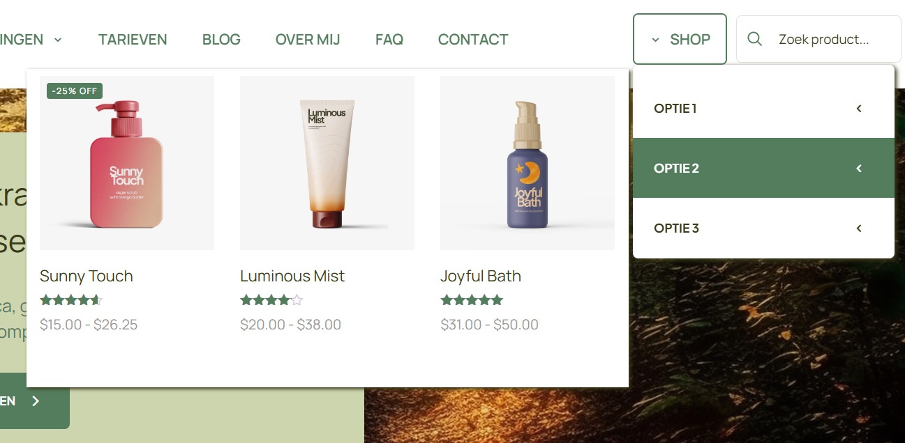 For example, I've added a shadow to one of the mega menus, and it's under menu OPTIE 2. However, the menus under OPTIE 1 and 3 also got shadows.