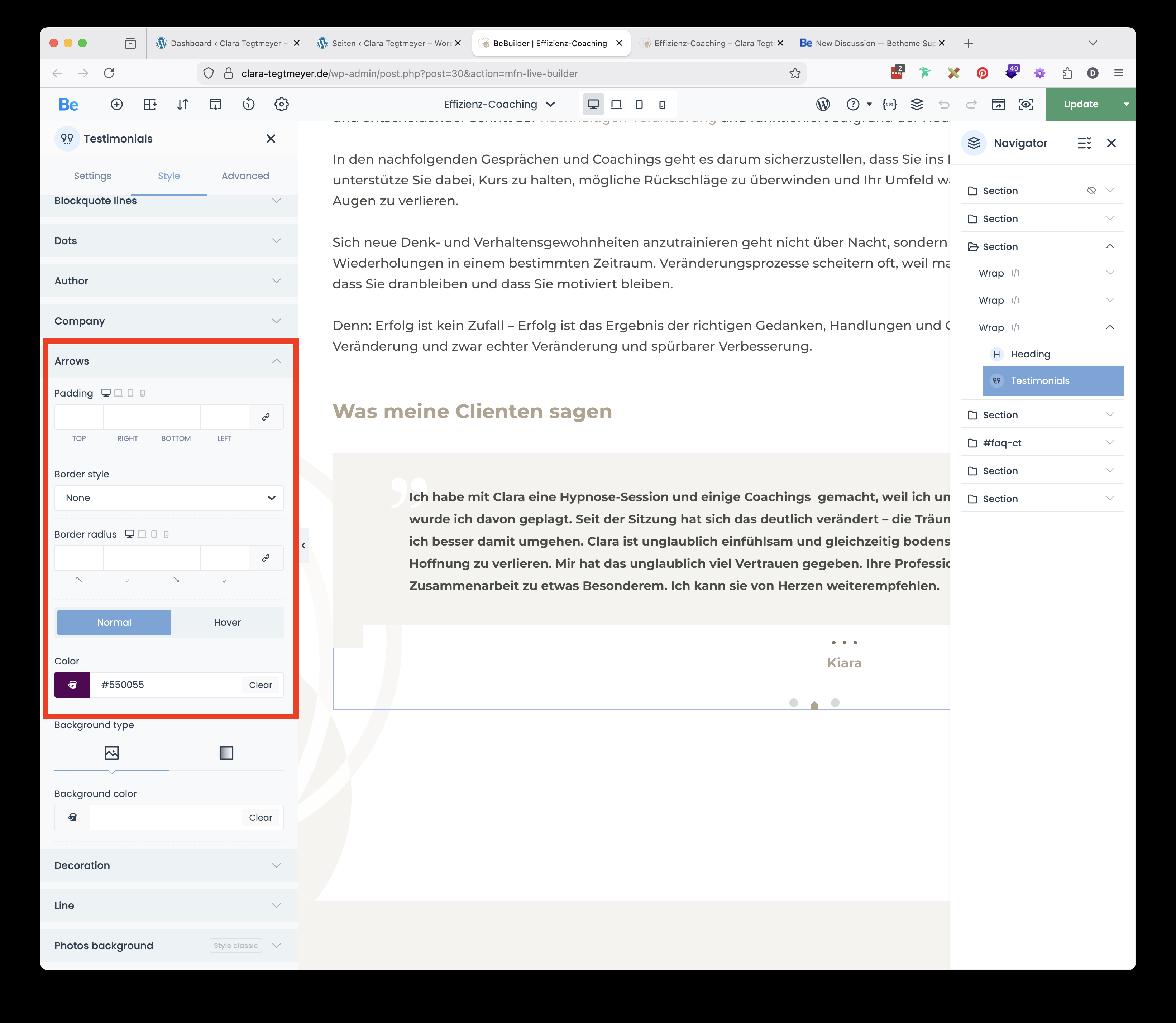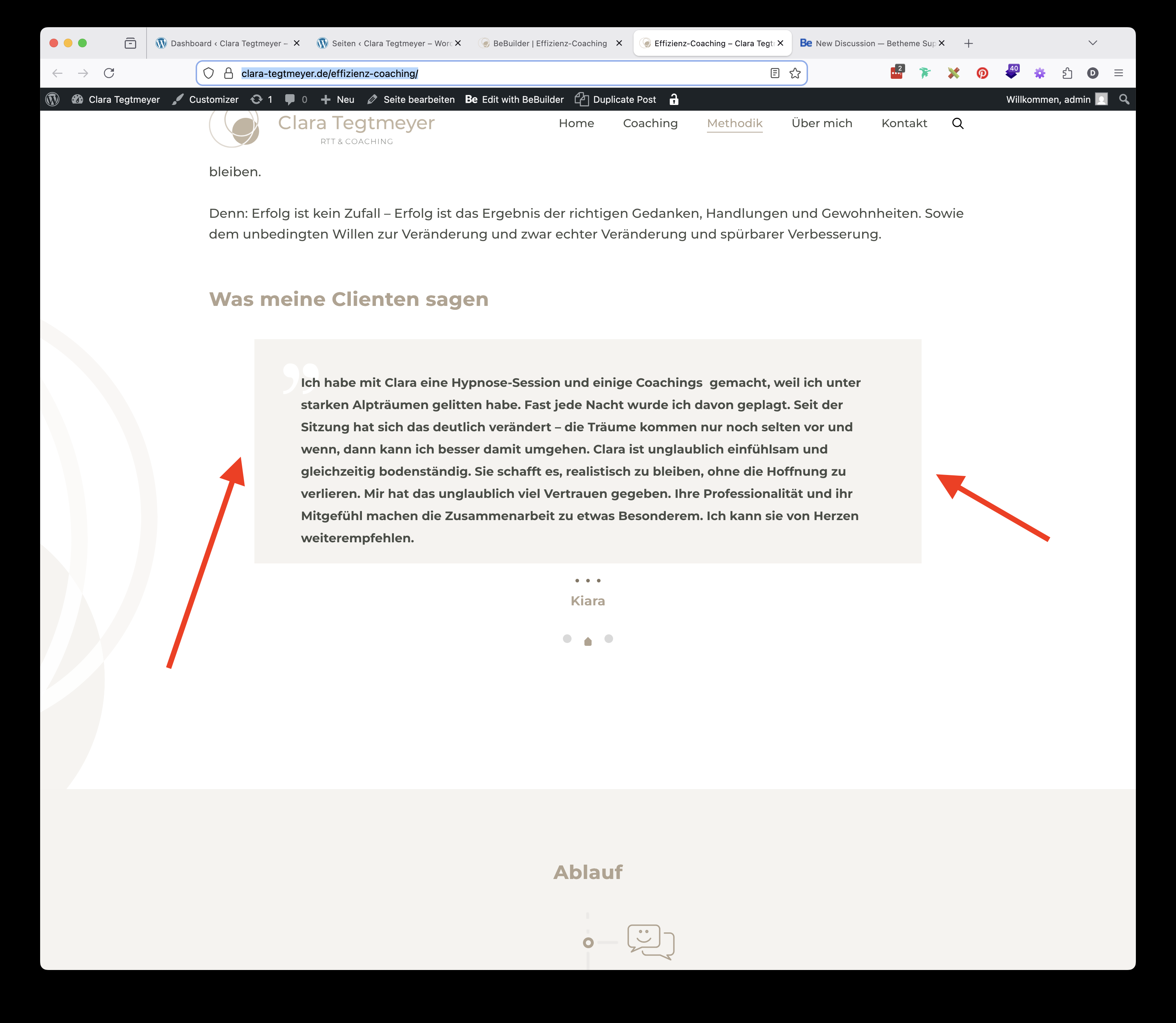 I am working on this page https://clara-tegtmeyer.de/effizienz-coaching/ (PW: RTT2025#Muenchen).