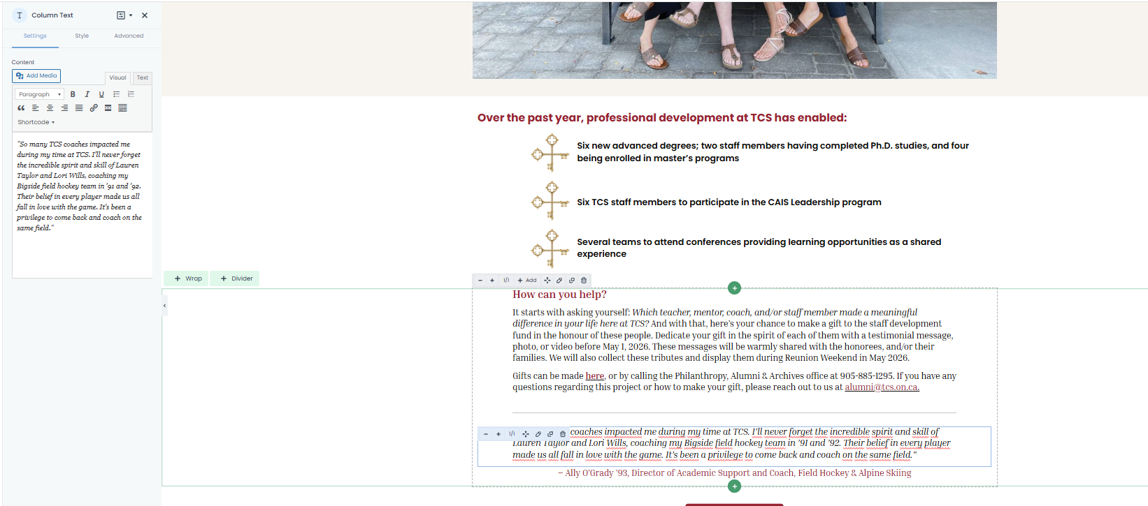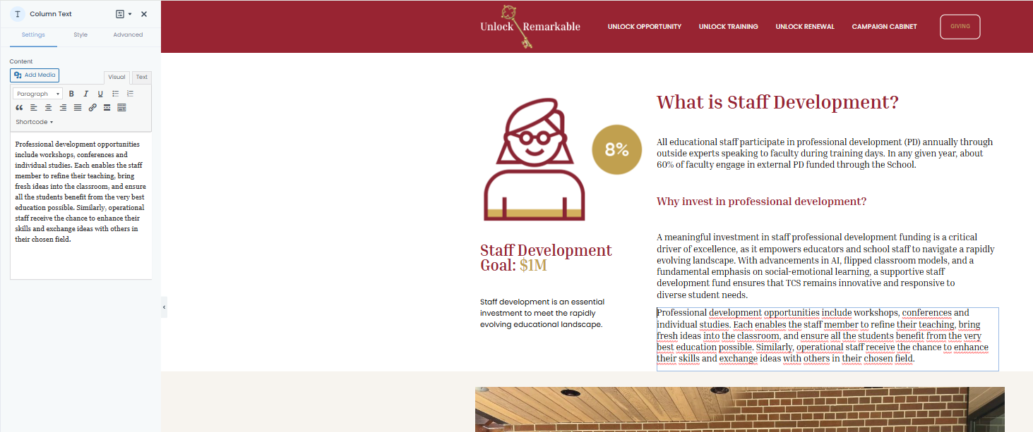 There seems to be a glitch on a page I updated yesterday (https://unlockremarkable.ca/unlock-training-2/). Paragraphs and sections I added do not show properly, when all settings are fine (and look as should) in the editor.