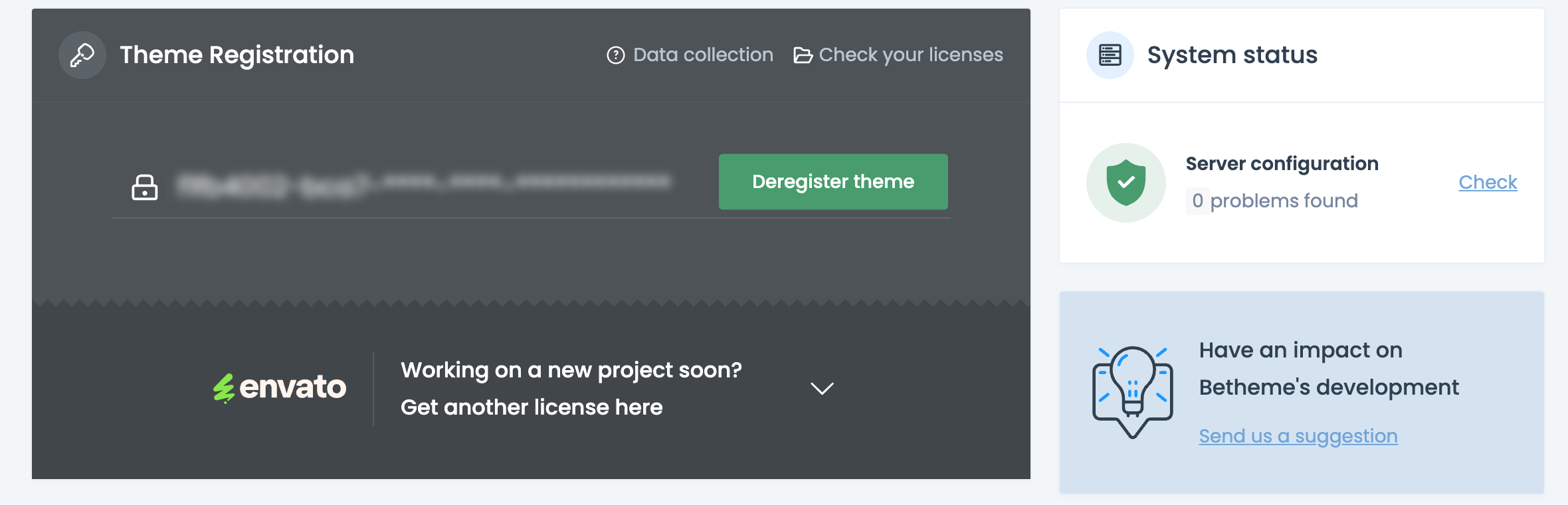 FAILED - Deregister BeTheme prevents registering new license on our client's website.