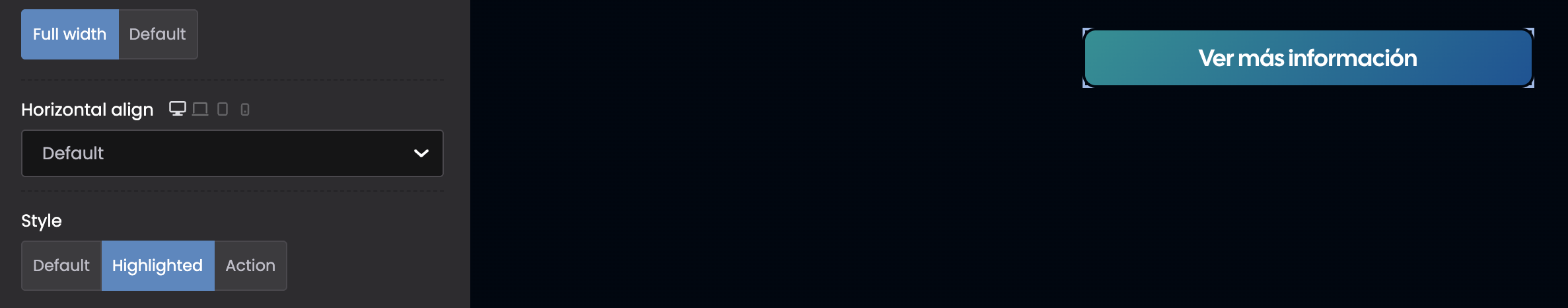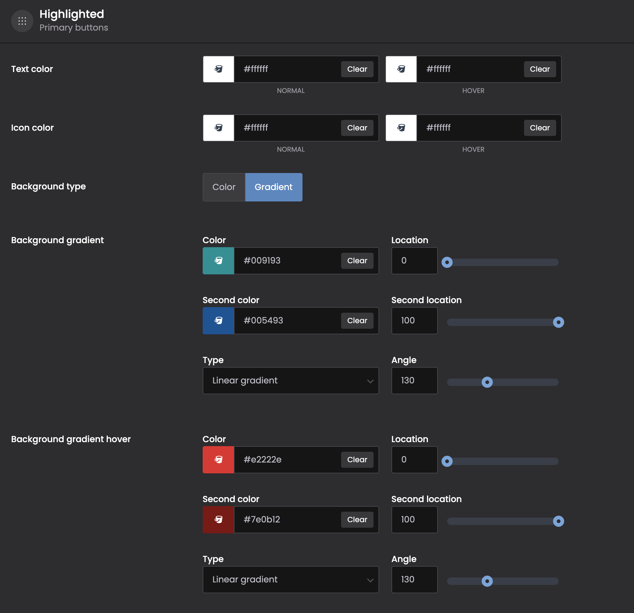 I have a gradient setting on the Highlighted button and I've set the hover effect duration to 1 second, but the animation isn't working; the change is instantaneous. I've tried making some modifications to the CSS transition property, but I haven't been able to fix it.