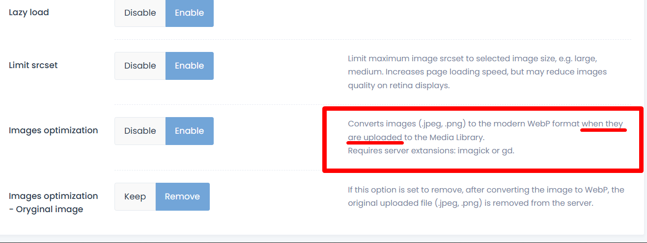 I have enabled Images Optimization but my images (JPG & PNG) are not converting to webp format still. Plz help what to do. I am also using other plugins lite cache & smush pro. Plz help what to do. I want faster site load.