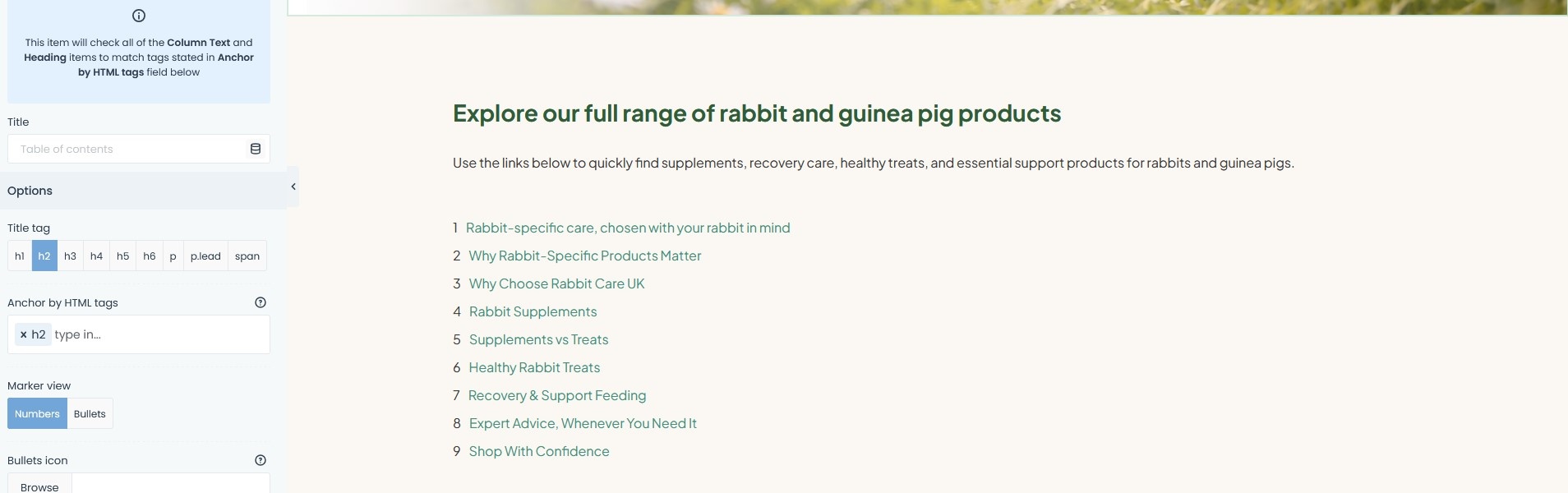 In the builder it displays correctly, but not on the live page: https://rabbitcare.uk/shop-all-products/