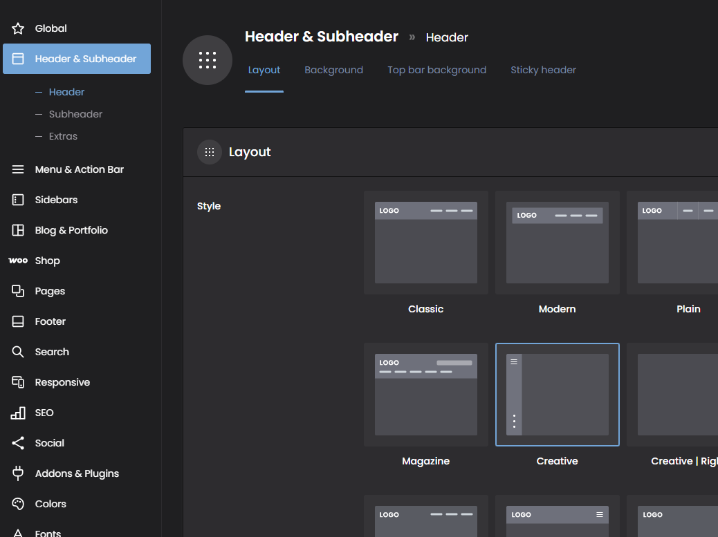 I have the creative header layout and i would like to have the action bar above it and visible on desktop-mobile, without the need to open the side menu.