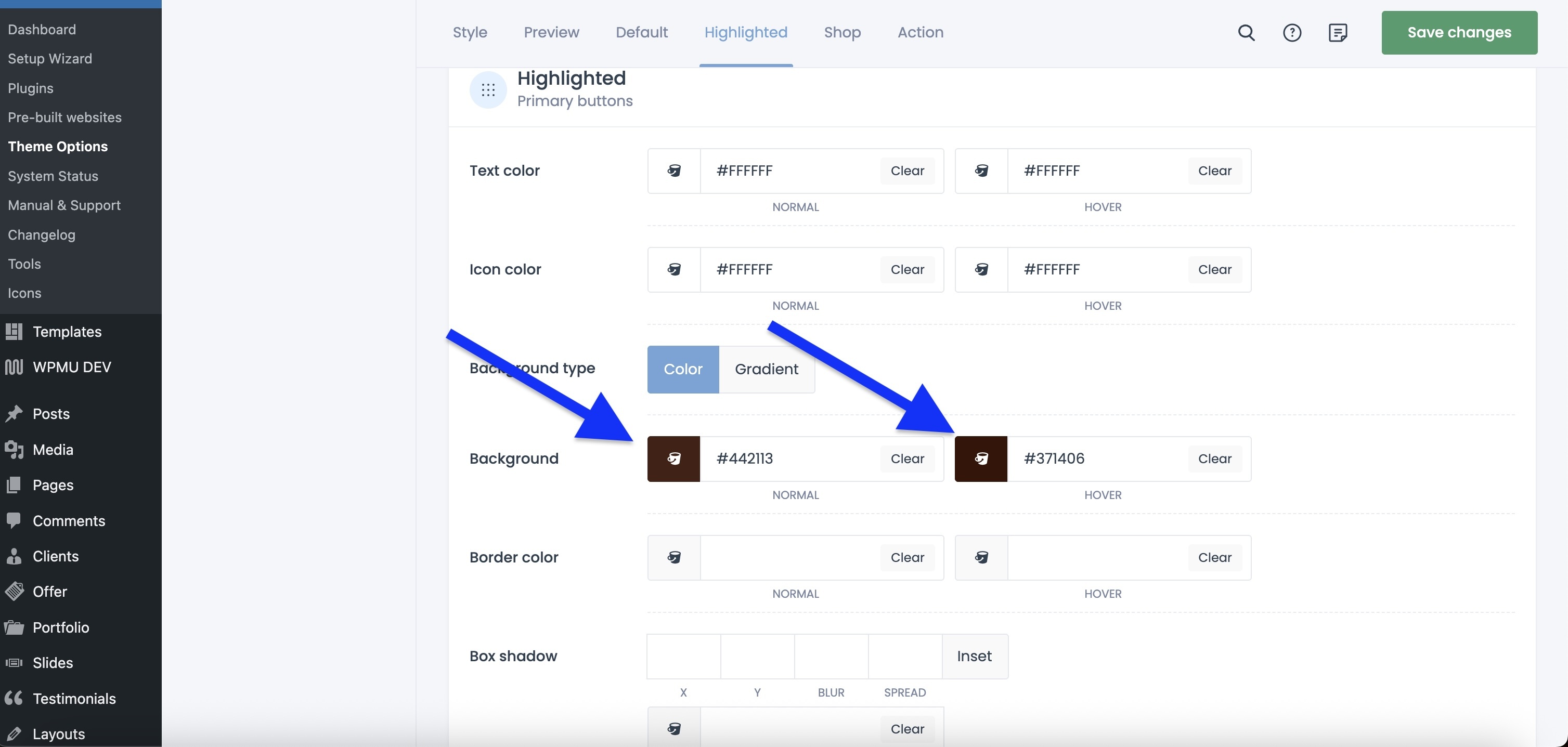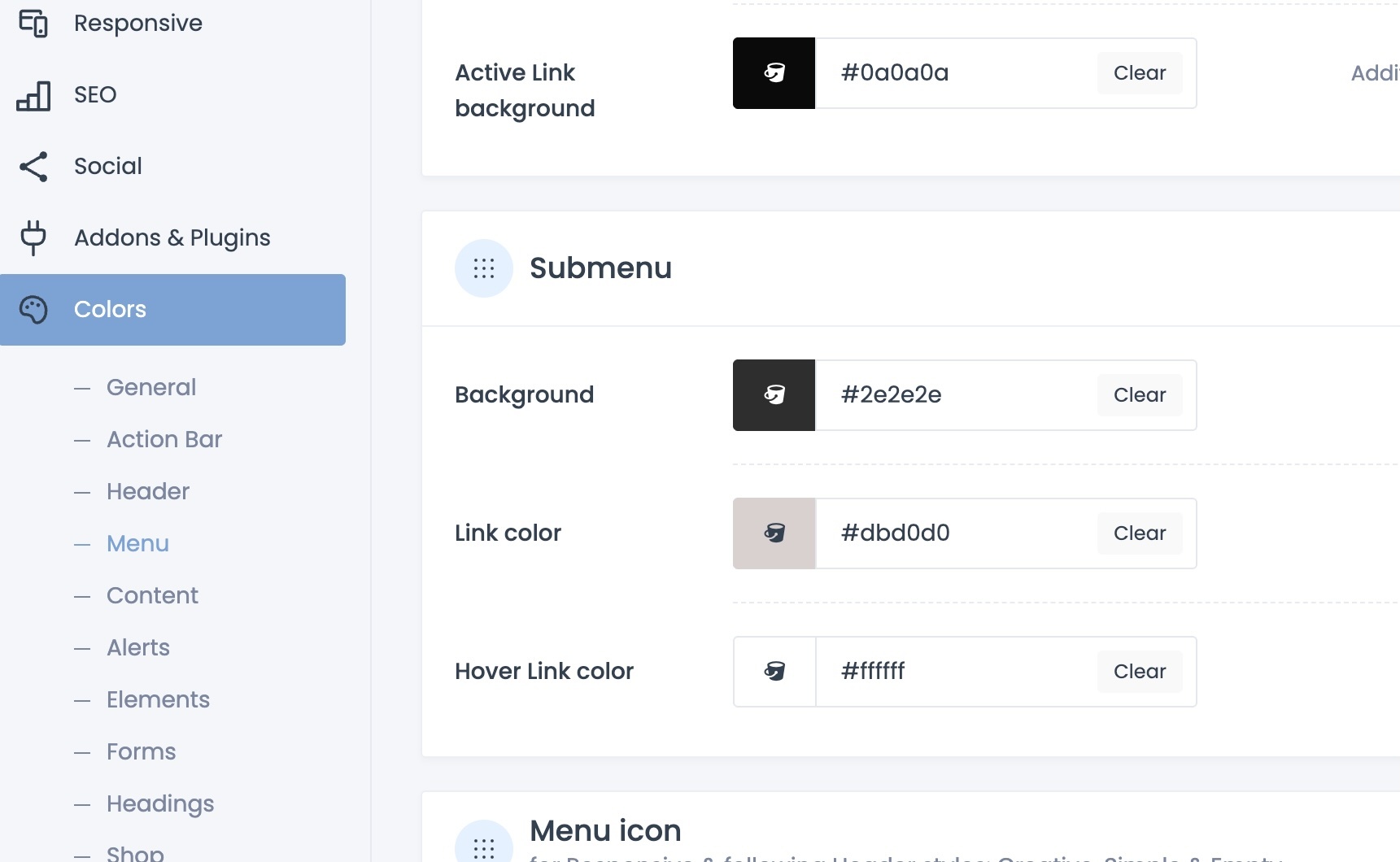 Active link (link?) background above didn't change anything. In the sub menu area, there isn't a setting to change the color of the sub menu when you hover over the page.
