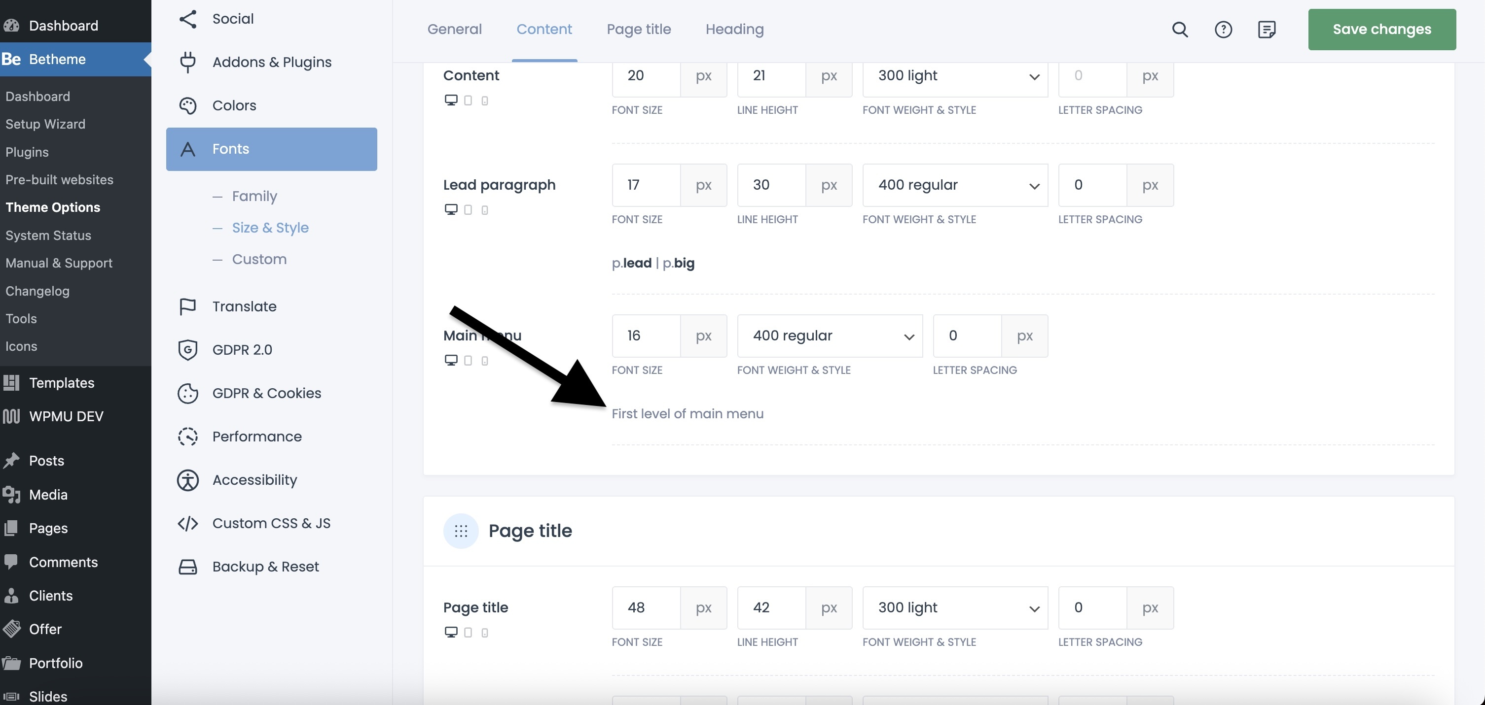 The Submenu has the same font size as you set for the Content:
