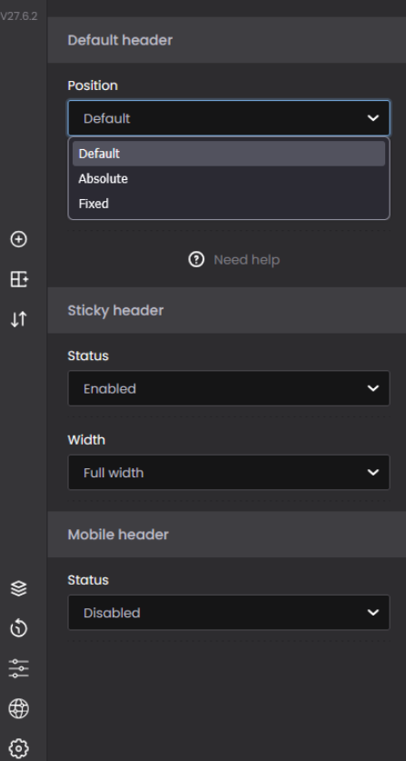 Where exactly are the settings for absolute and fixed header now?