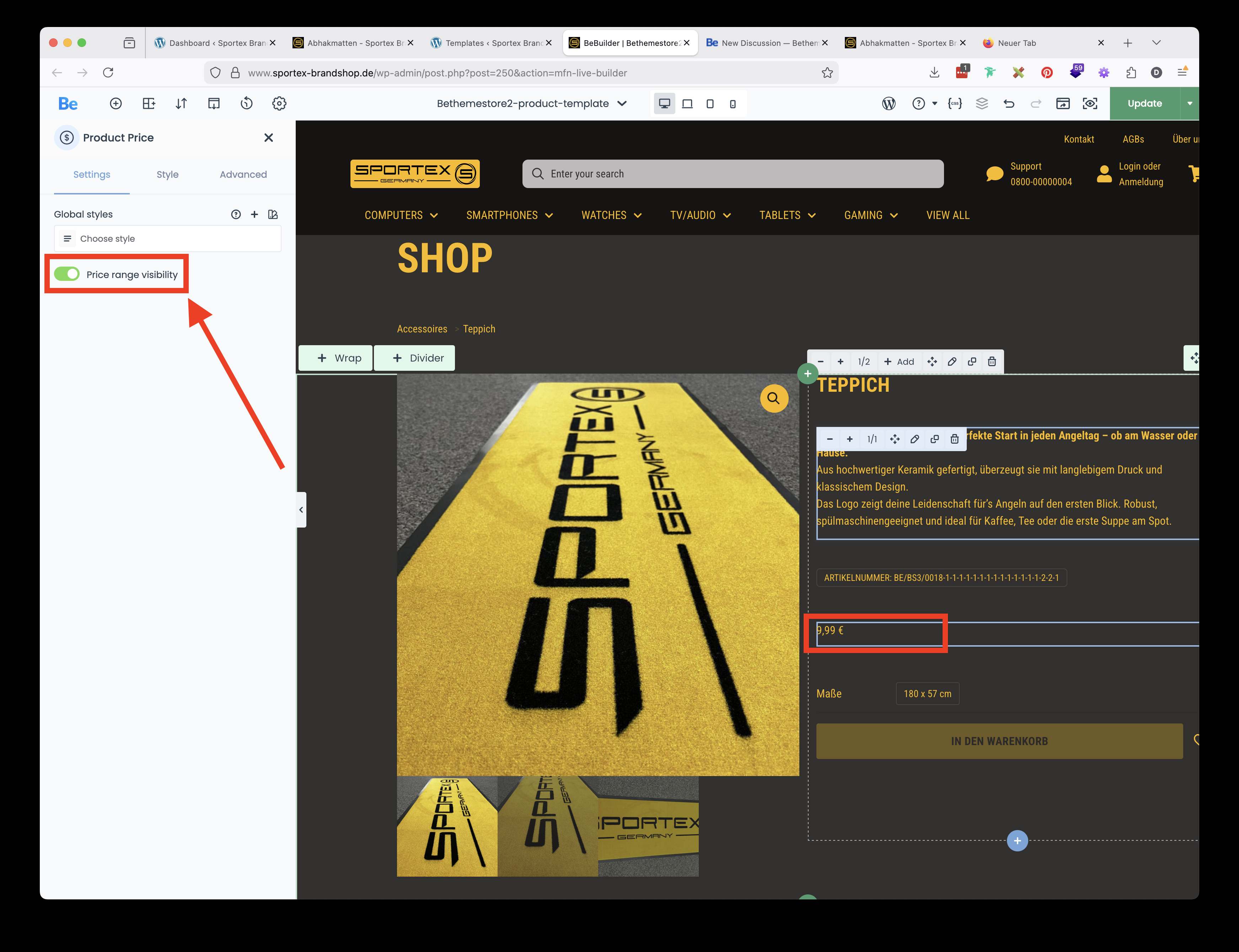I´ve tried turning of the "Price range visibility" in the Template, but then it doesn´t display the price at all.