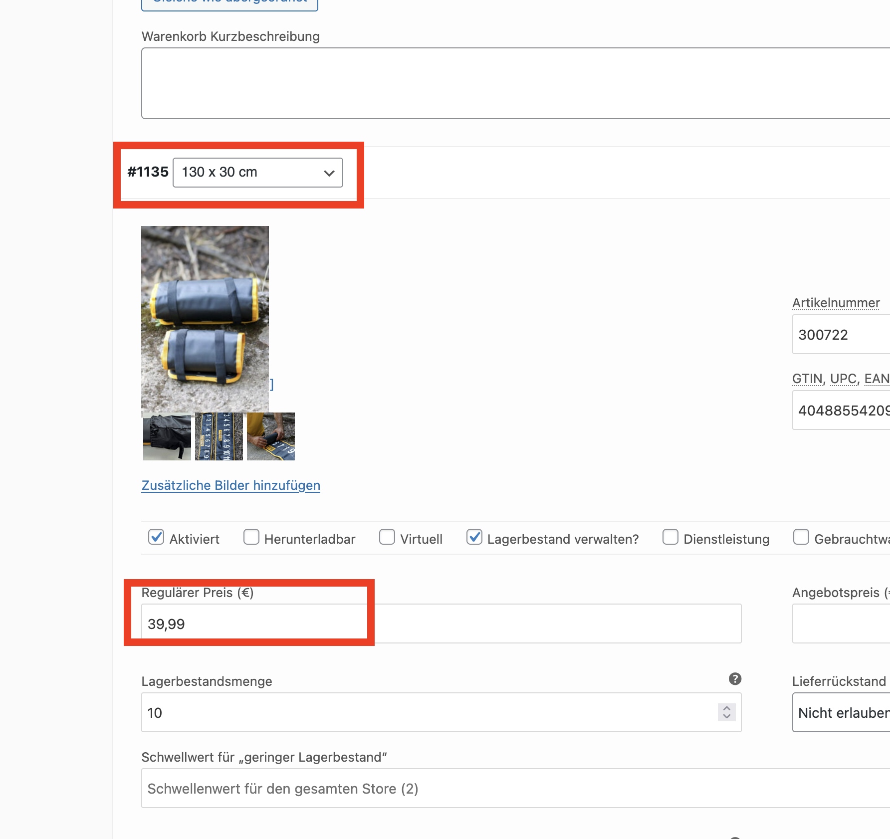The product itself has 2 variations with different lengths and prices: