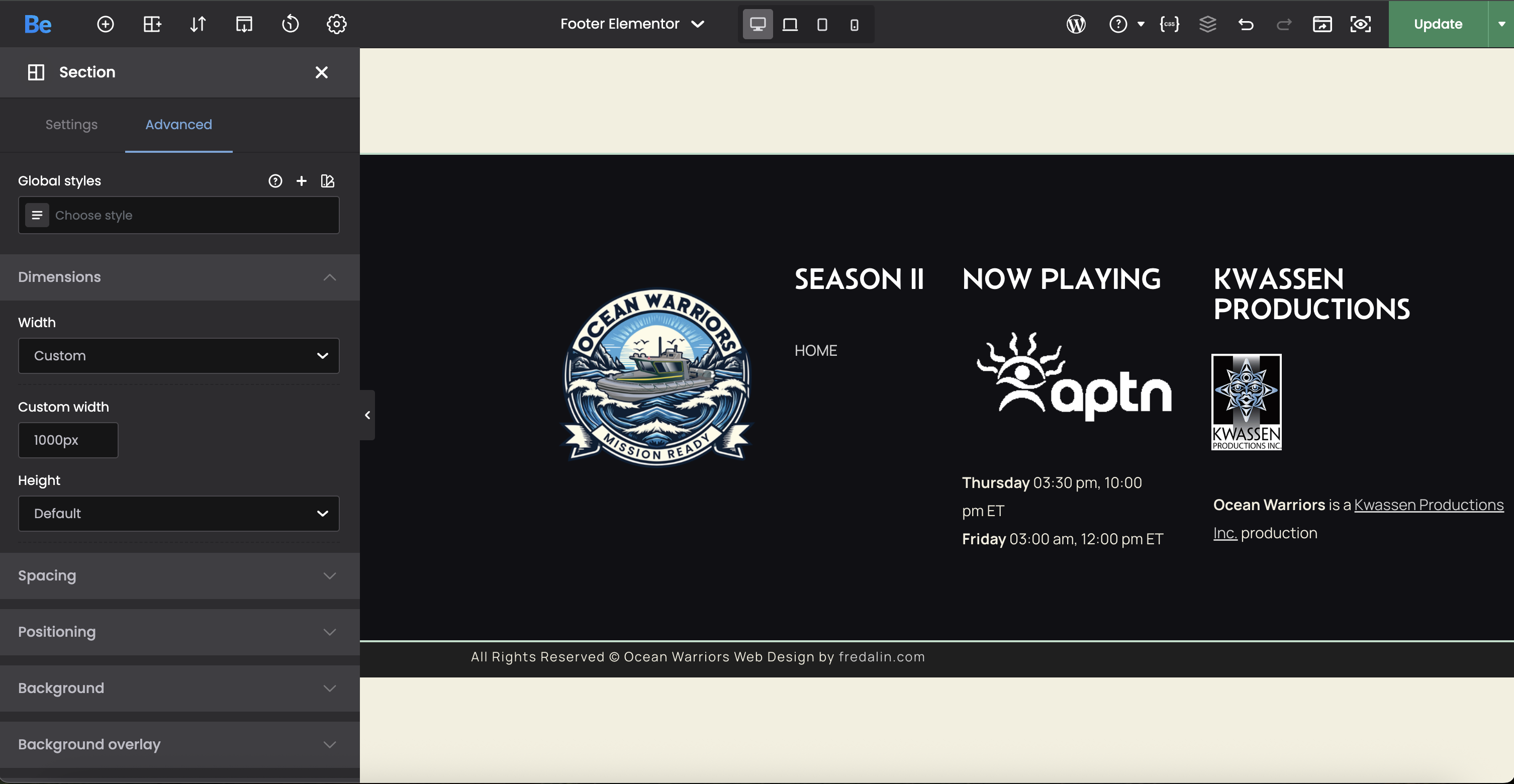 Hi there! Could you please help me set the footer Template width for Elementor pages?