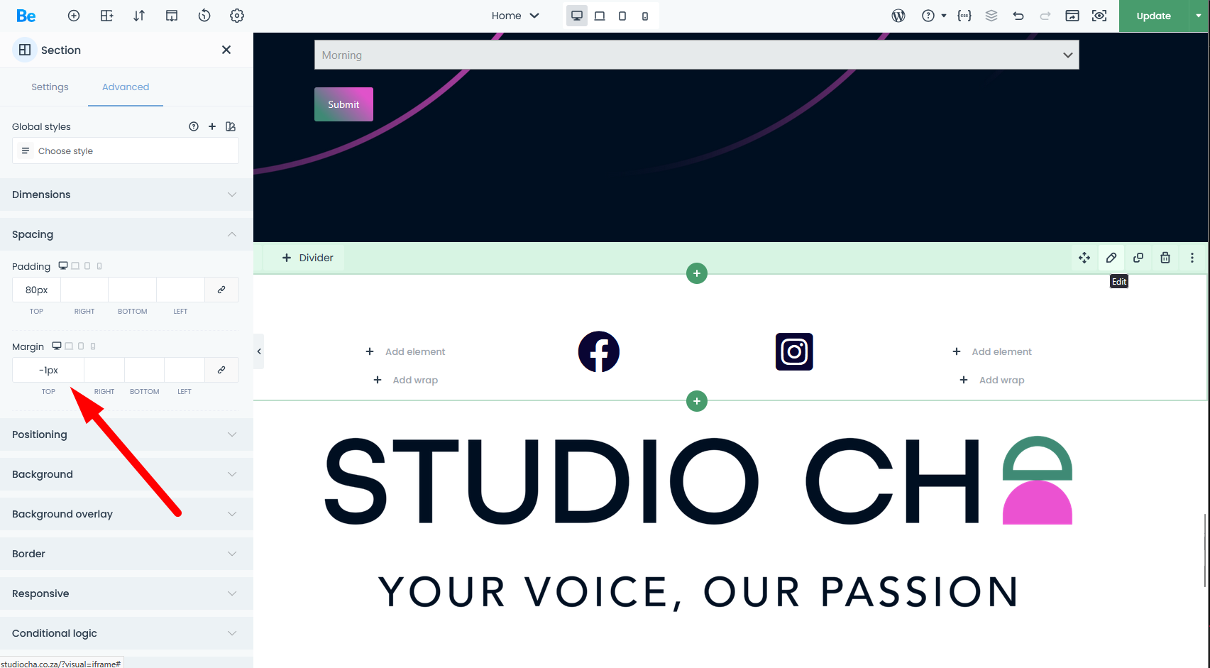 Hi there - the website sadly is in maintenance - I could give you login access to view... the url https://studiocha.co.za/