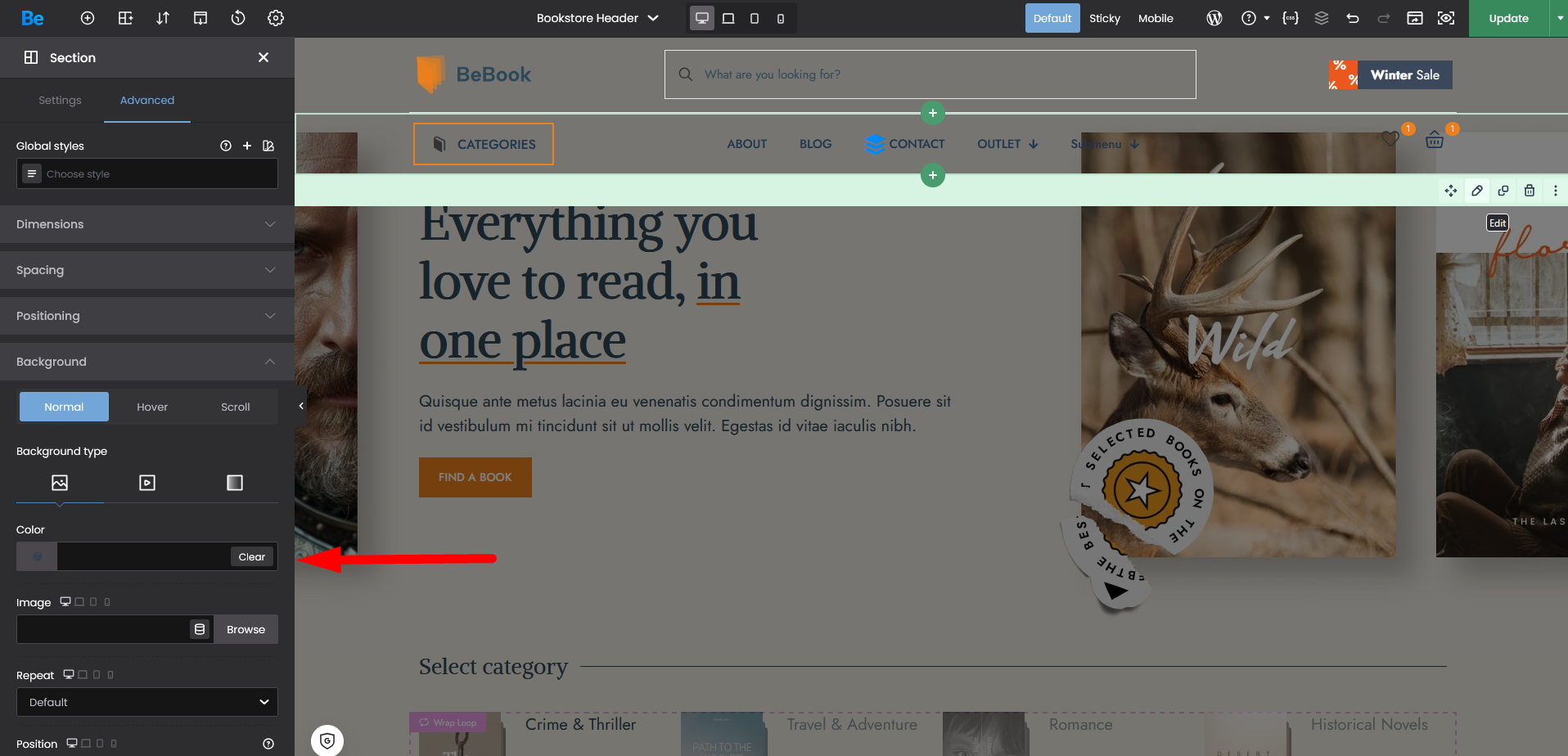 for now i have created using be builder, how can i make the header transparent(made it) and overlap the content on the page.