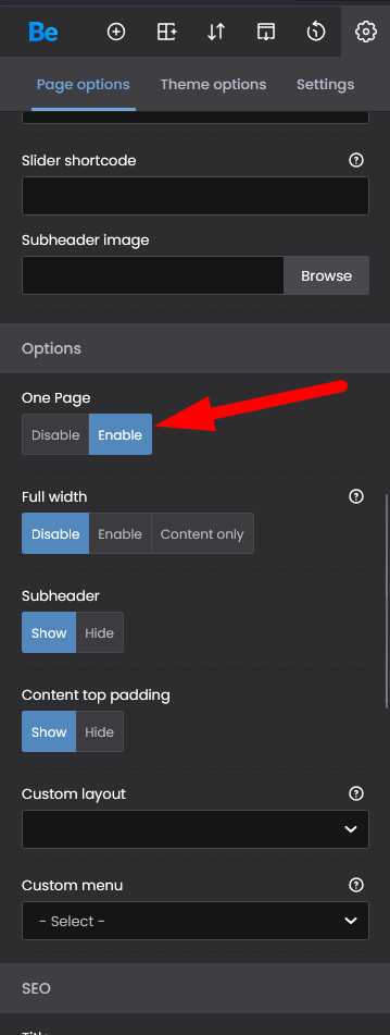 Please enable the One Page option for that page, and check it then: