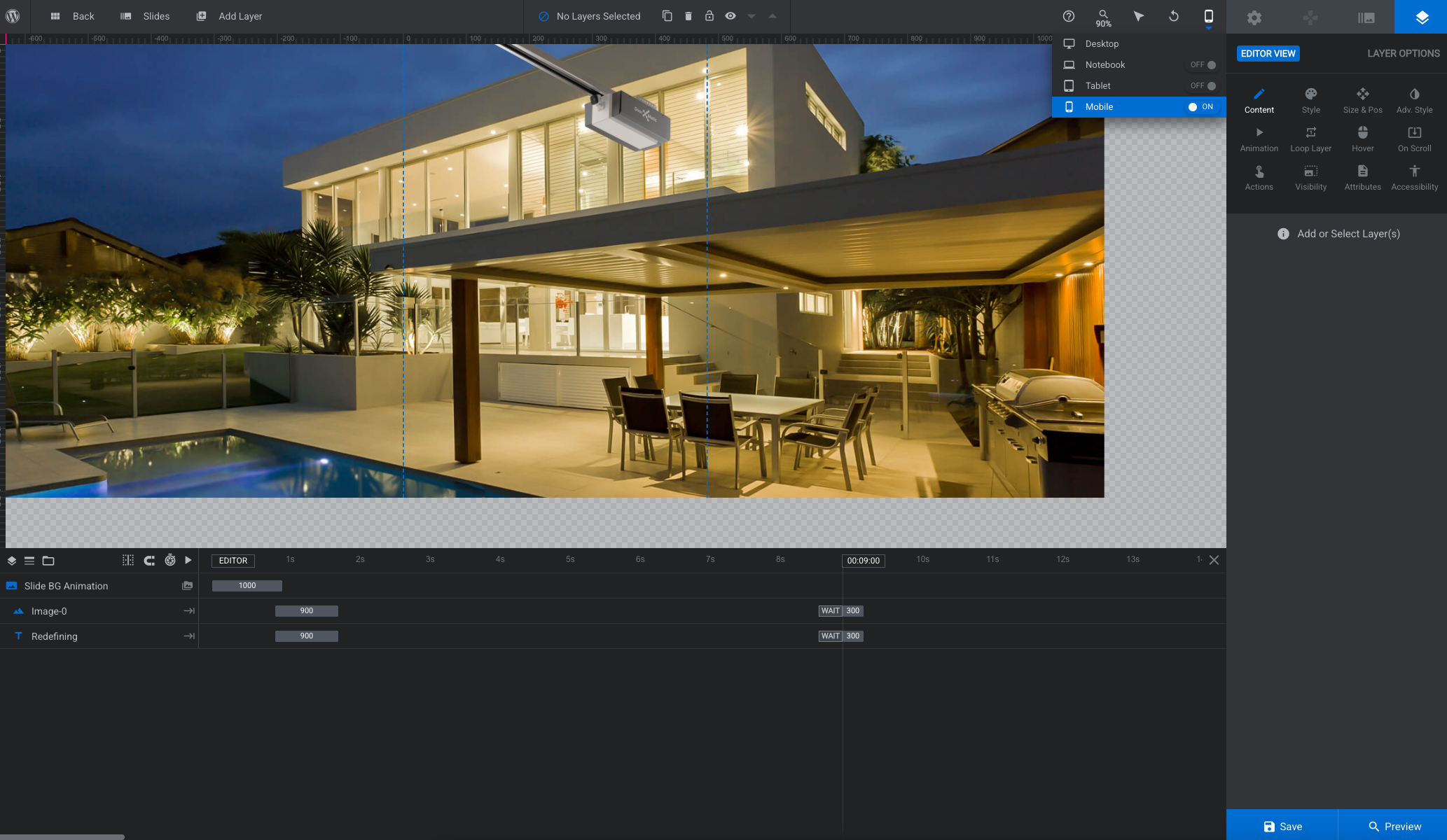 After switching to mobile layout, that text ("Redefining ...") is no longer visible.