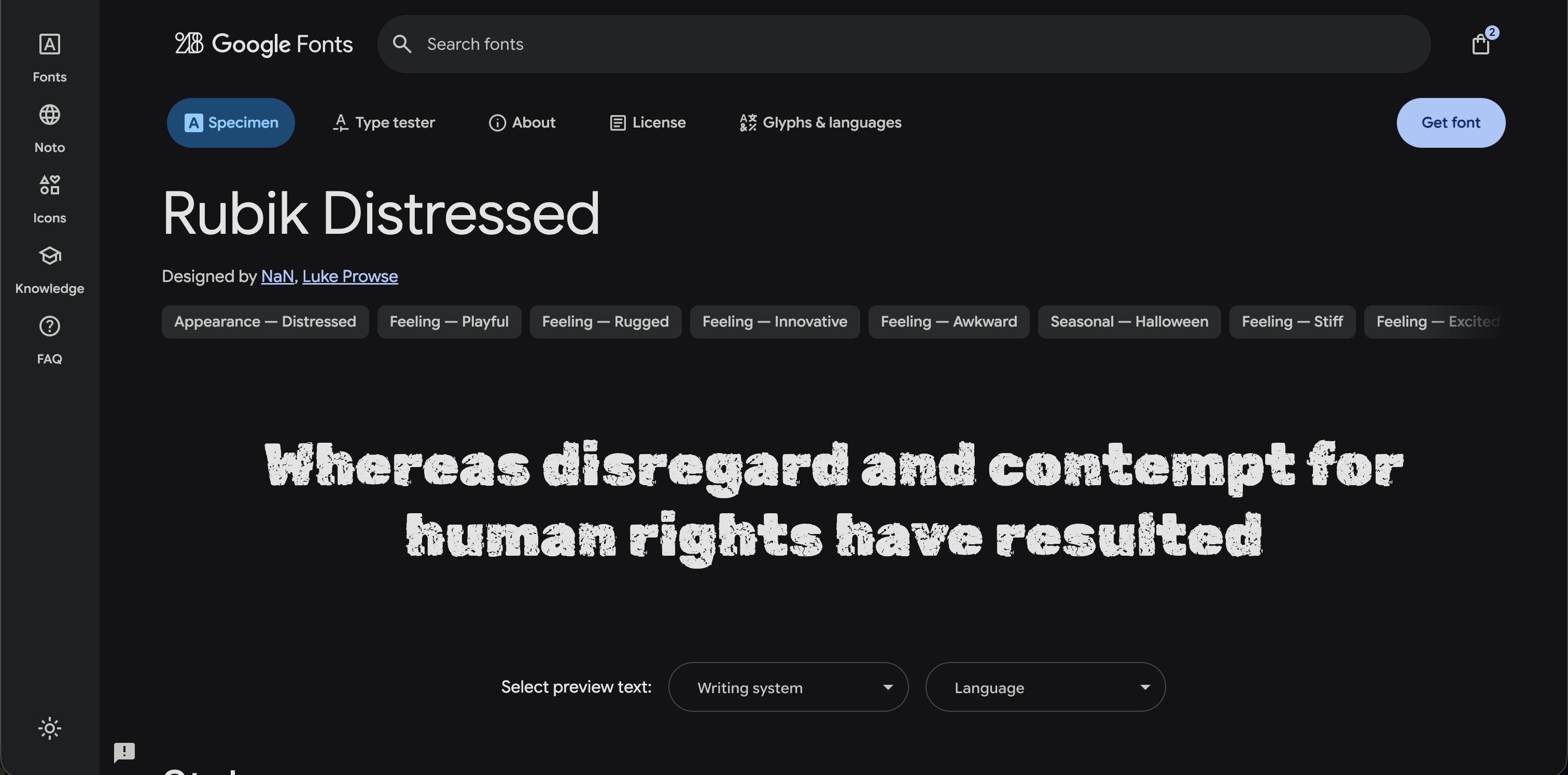 I'm attempting to use a certain Google font - Rubik Distressed - but the font isn't showing up on the web page after I save it. I'm first testing the look of it in the <h2>.