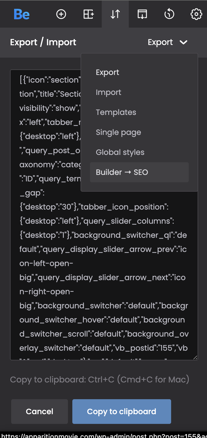 After using Export -> Builder SEO, is it necessary to push save in the builder or in the WordPress part of the site?