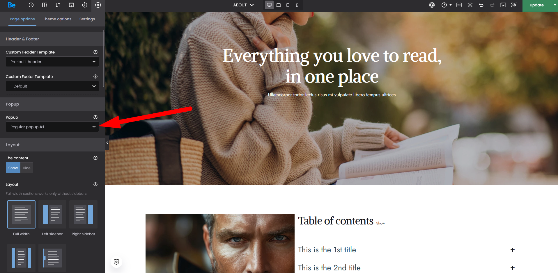 single page pop up