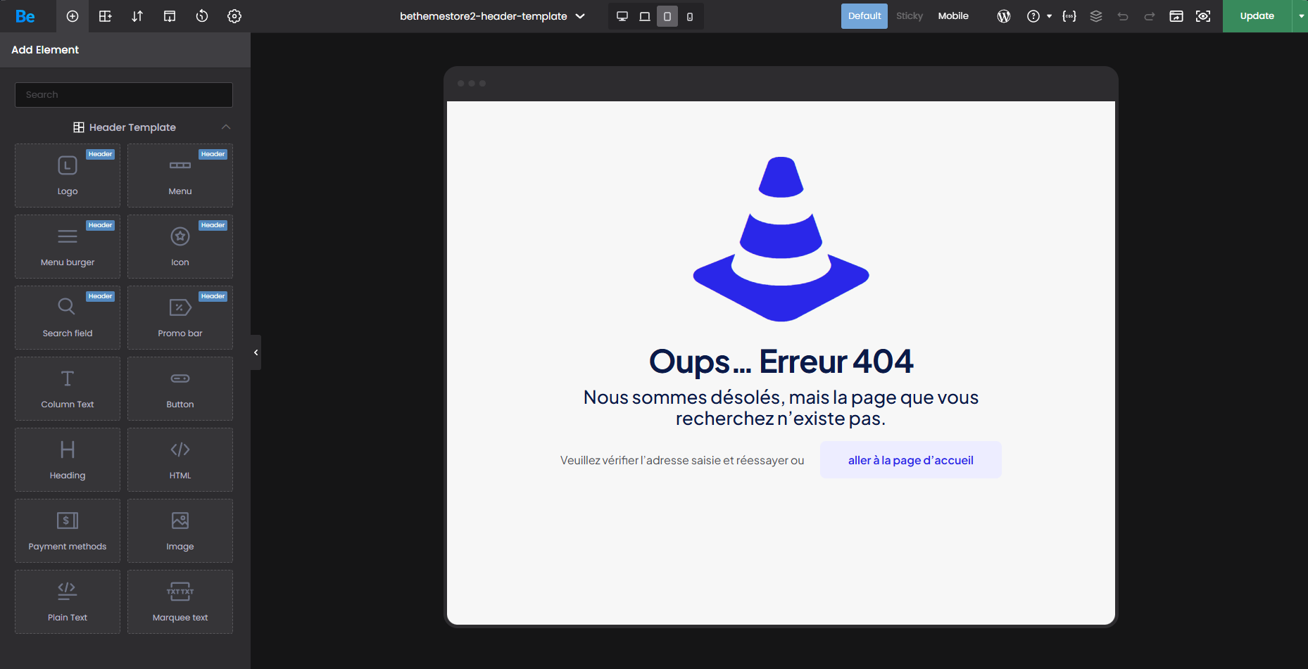 I can't edit the header template, when I try to open it with BeBuilder, the following error message appears