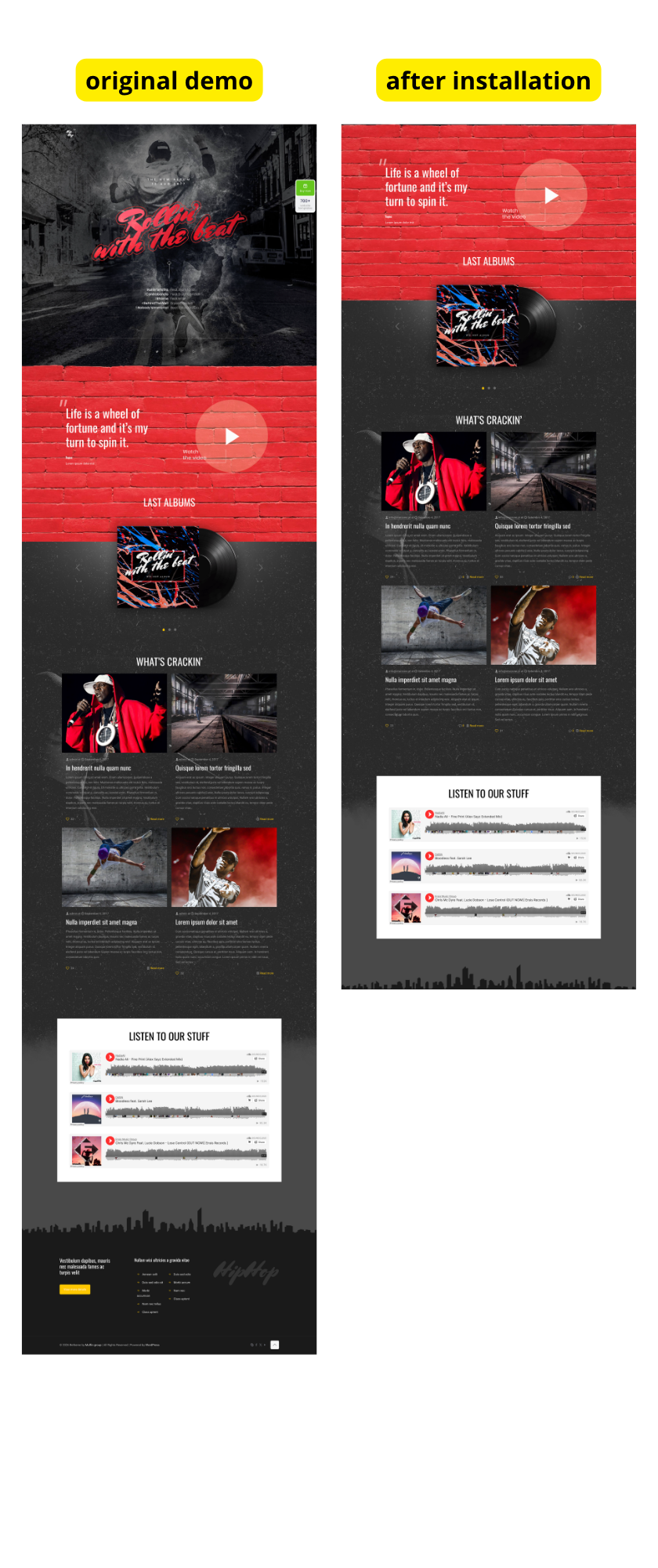 I installed the Hip Hop theme from BeTheme, but the import seems incomplete or broken.