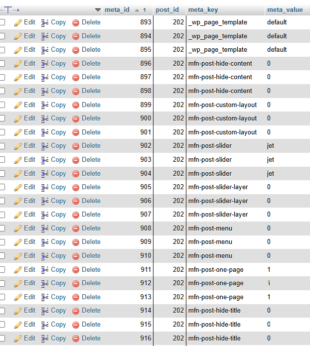 SELECT meta_id, post_id, meta_key, meta_value FROM wp_postmeta WHERE post_id = 202