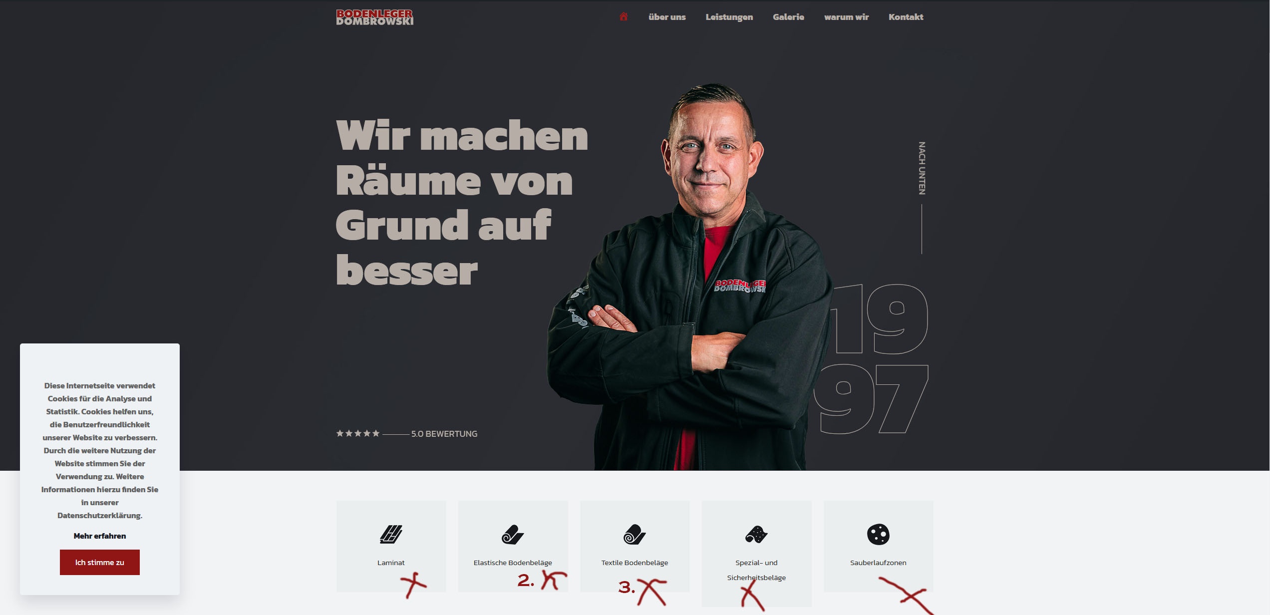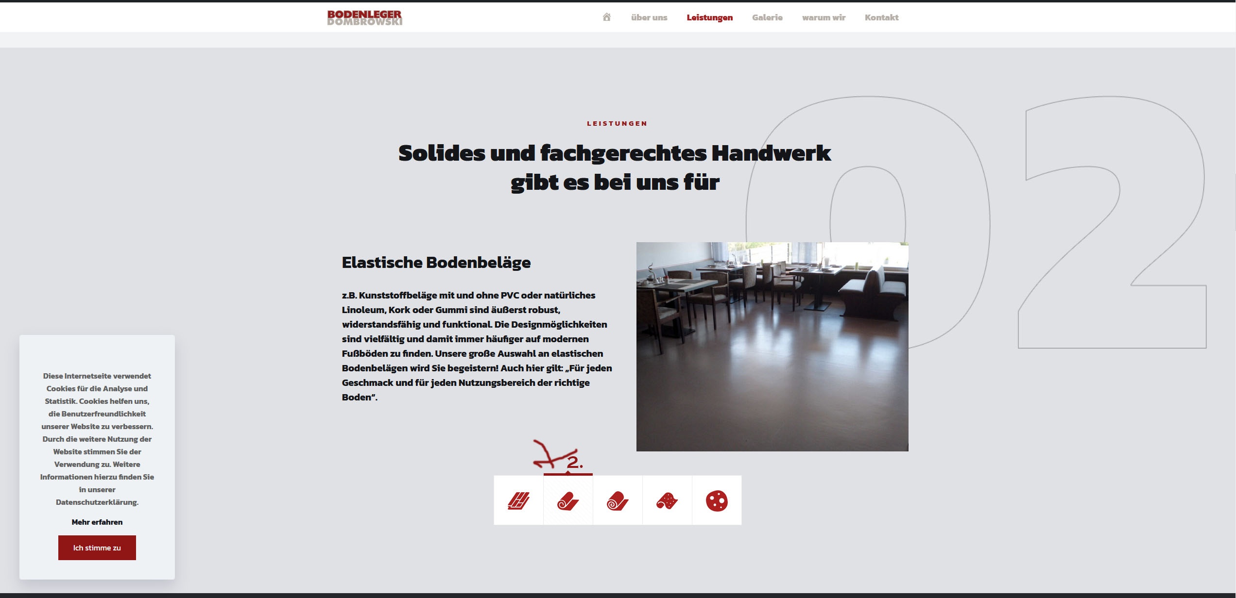 In the header image, I have five elements below the slider that are linked to the corresponding section below via the hook #leistungen.