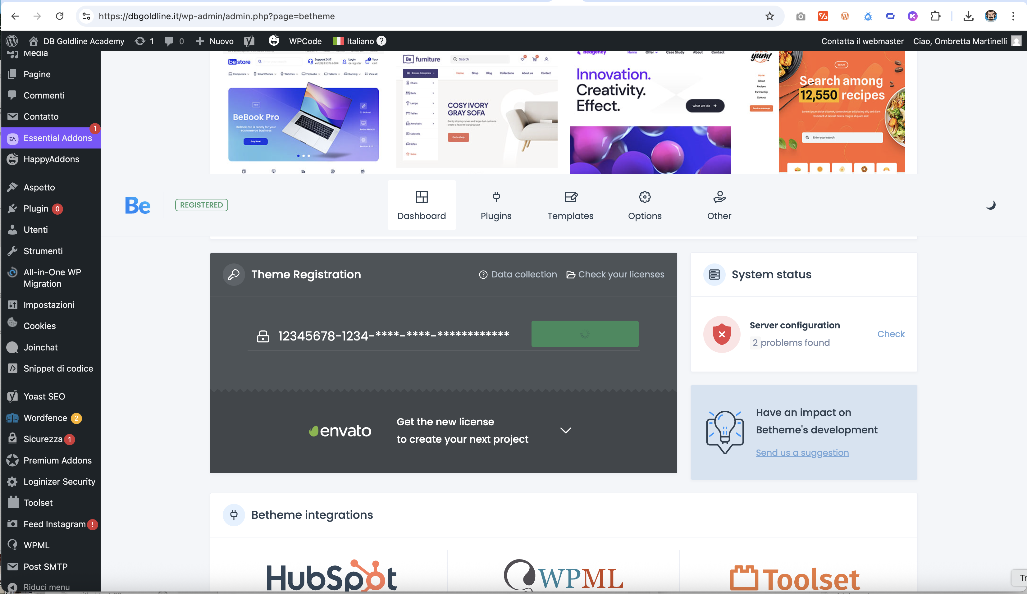 On my site https://dbgoldline.it/ when I click on "deregister theme" so that I can insert the new purchase code, nothing happens! It just sits there and I cannot insert the new purchase code (screen shot is attached).