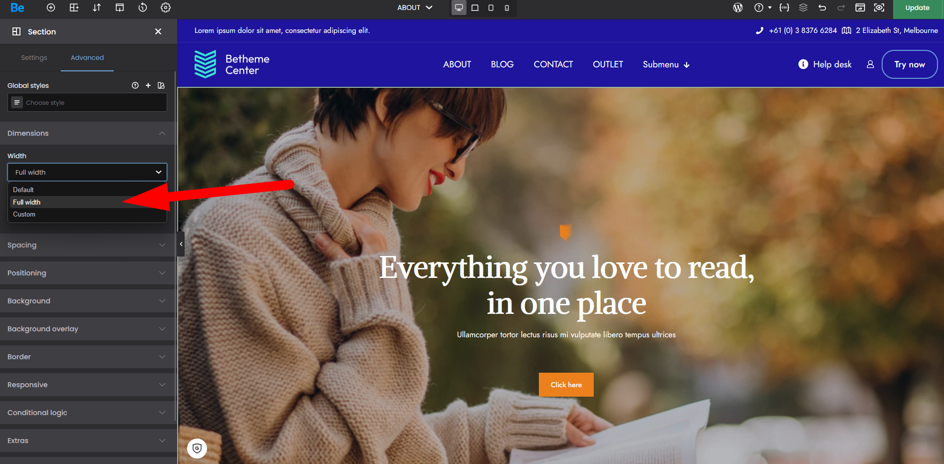 There is something called "site width" and yours is set to 1120.