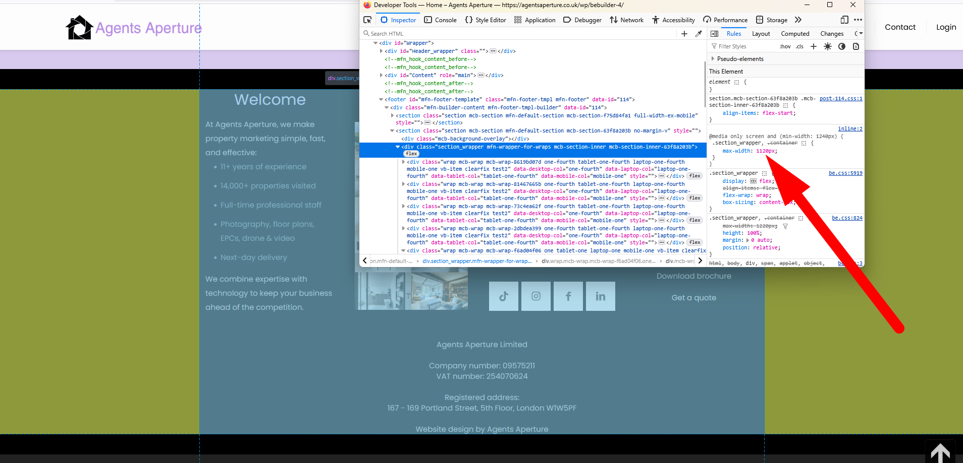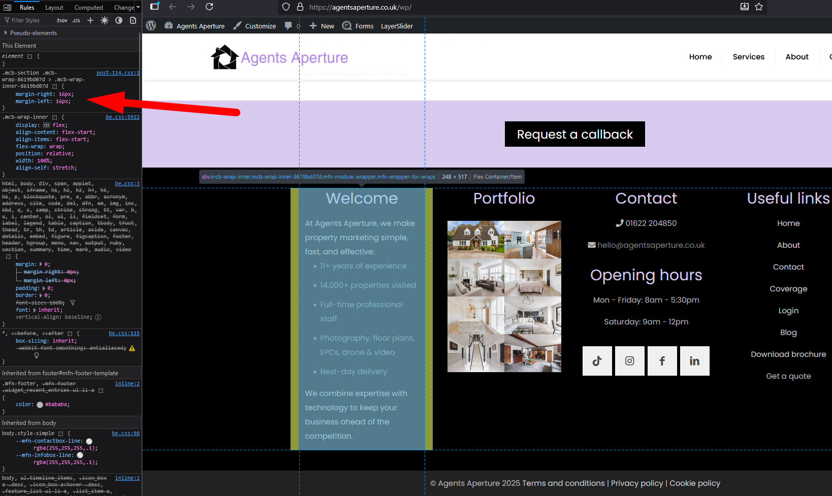 Hi, I am building my footer section on my website and after trying quite a lot to add vertical spacing I am not able to for some reason. When I increase the margin or padding the section containing the content just expands vertically instead of horizontally? I want to give the four elements more space so they are not so close together, is there any way that I can do this? I have attached a couple of screen shots so you can see what I am trying to achieve. Here is a link to the site: https://agentsaperture.co.uk/wp/bebuilder-4/