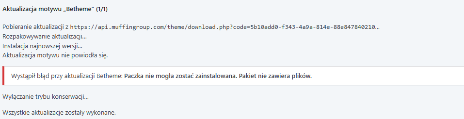 After that, get into the license manager once more. If the license key is still claimed, deregister it. If it’s not, register it again on your domain (through the BeTheme -> Dashboard) and try to update your theme a couple of times (usually, it passes after 2-3 attempts) - remember, all of the plugins have to be disabled.
