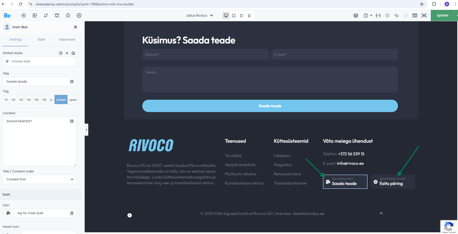 I’m not sure what’s causing the issue with the footer. I added two Icon Boxes, and everything looks fine in the admin view, but when checking in incognito mode, the layout appears misaligned. Clearing the cache didn’t help. Could you please take a look?